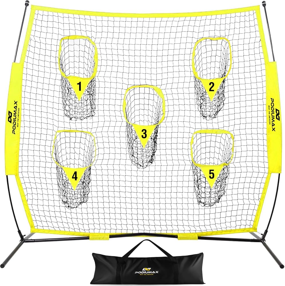 PodiuMax Portable Football Trainer Throwing Net, 8ft x 8ft Knotless Net for Improving QB Throwing Accuracy with 5 Target Pockets