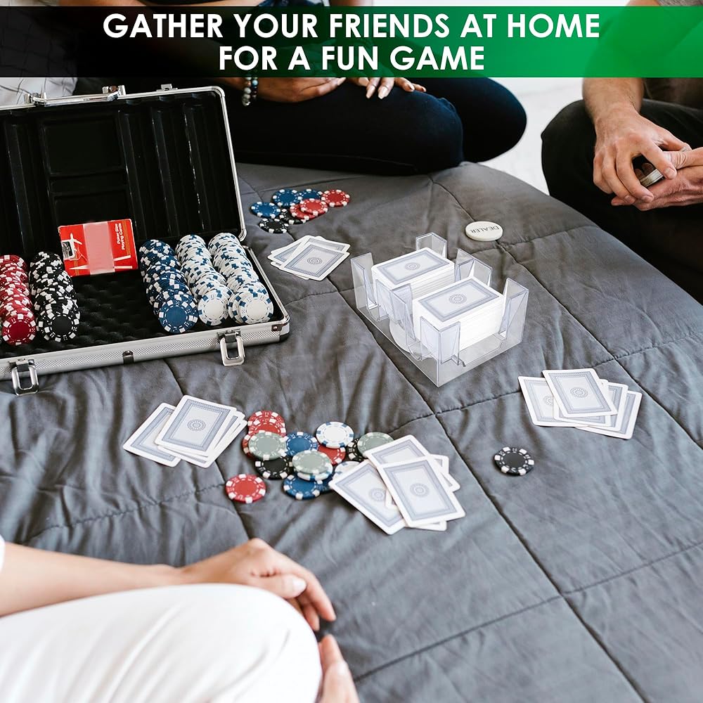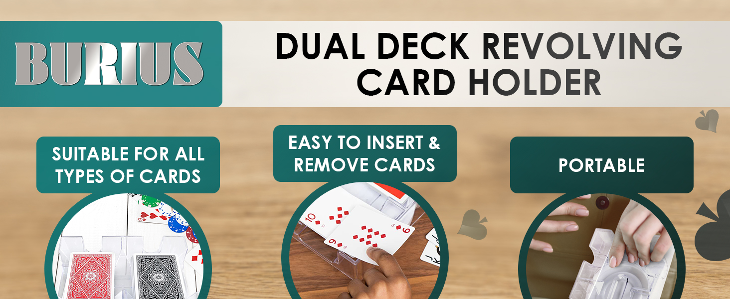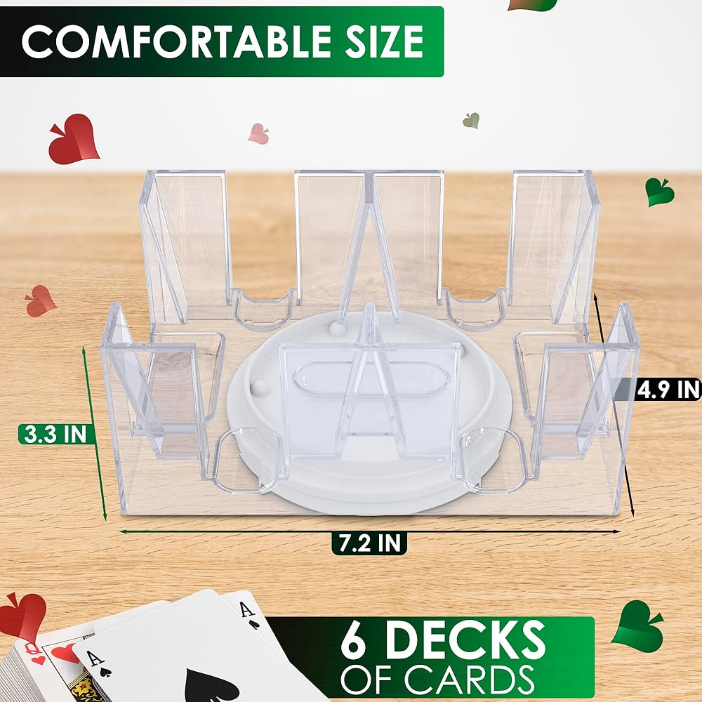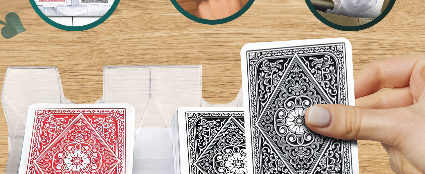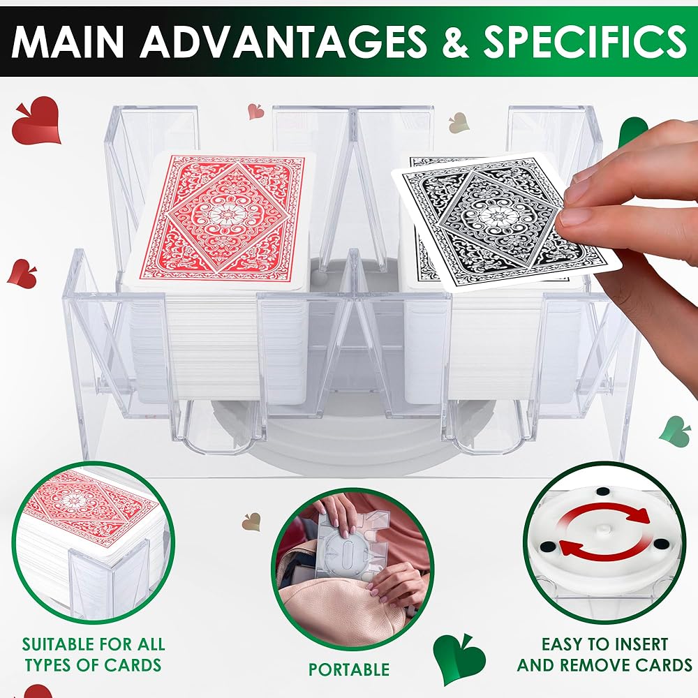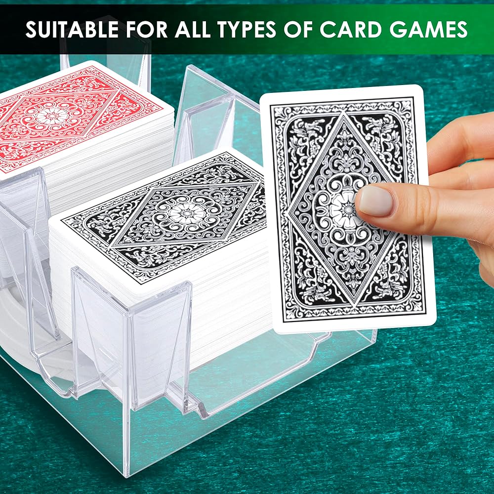 حامل بطاقات سهل الوضع على الطاولة: يمكن لحامل لعب البطاقات هذا أن يحمل طبقتين - واحدة في كل فتحة واسعة وبطاقات ضيقة تناسب بسهولة جدًا، يمكنك وضع وإزالة البطاقات بسهولة داخل حامل البطاقات البلاستيكية الشفافة لبطاقات اللعب. حامل بطاقات البوكر البلاستيكية هذا صغير الحجم للغاية ومحمول للاستخدام في كل مرة، كما أن حافظة بطاقات اللعب متينة وخفيفة الوزن حتى تتمكن من حملها معك في تجمعات الأصدقاء والنوادي والحانات وفي أي مكان.