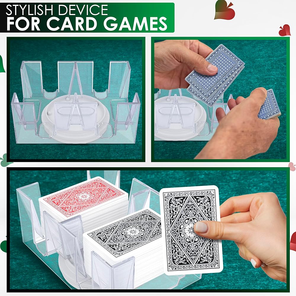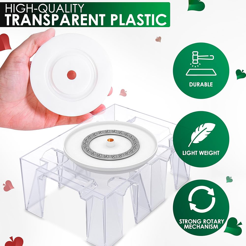 تتضمن حزمة علبة البطاقات البلاستيكية ما يلي: في هذه الحزمة من حامل بطاقات المكان، سيكون لديك حامل بطاقات للعب الورق. (أوراق اللعب البلاستيكية لم تكن متضمنة في عبوتنا). حامل بطاقات الأطفال قوي جدًا أيضًا مع قاعدة دوارة دوارة رائعة، حامل بطاقات اللعب البلاستيكي الشفاف هذا مثالي للاعب البوكر. مع حامل أوراق اللعب الدوار للبالغين، ستصبح أكثر شهرة بين أصدقائك.