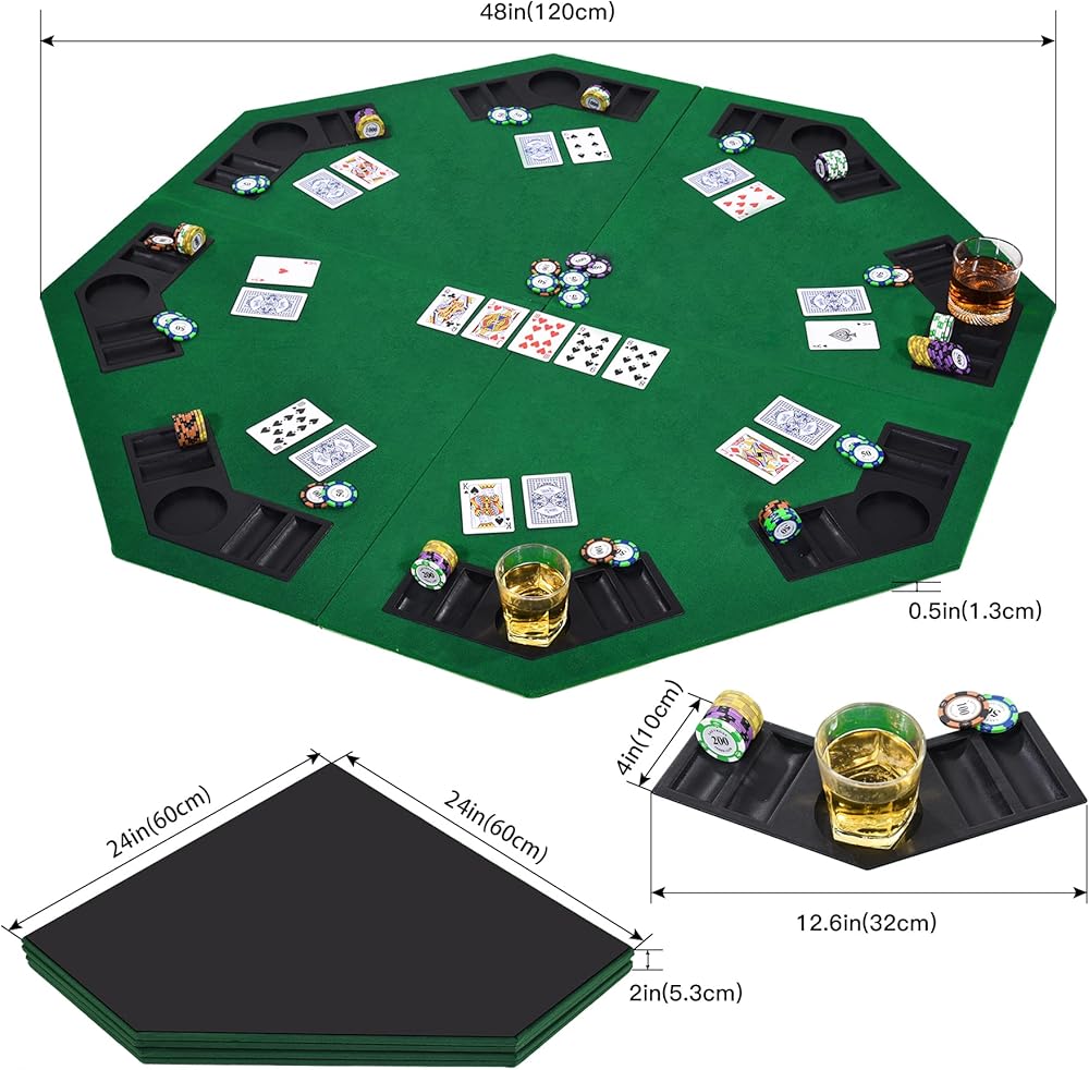 🎲 [سطح طاولة البوكر ذو 8 لاعبين] - سطح طاولة البوكر الخاص بنا مصمم بشكل مثمن، سطح طاولة البوكر مقاس 48 بوصة يمكن أن يستوعب 8 لاعبين معًا لألعاب الكازينو. إنه الرفيق المثالي لك ولأصدقائك للعب Texas Hold'em وBlackjack وBridge وFive Card.