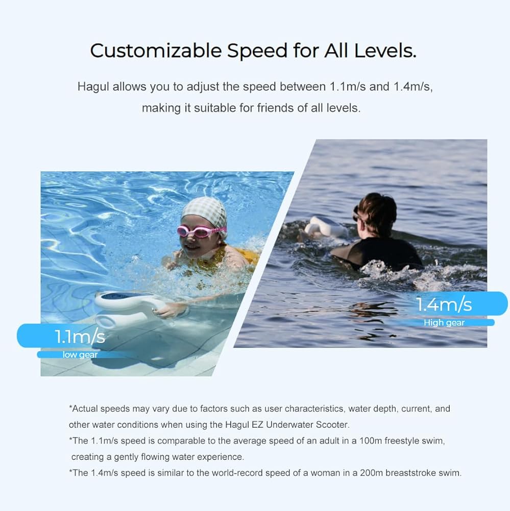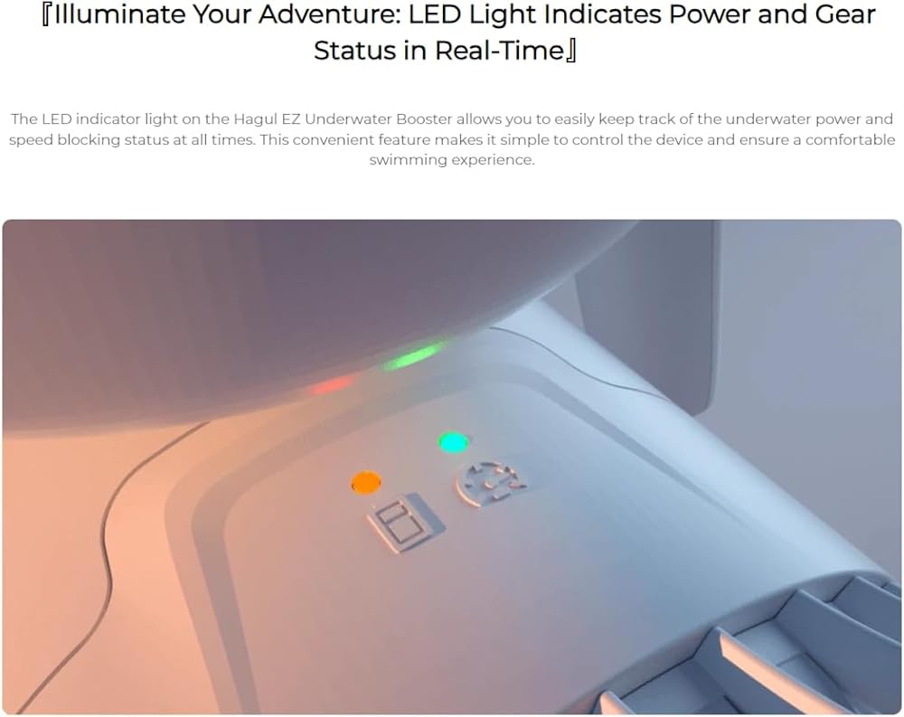 ضوء مؤشر LED: يسمح لك ضوء مؤشر LED الموجود على Hagul EZ Underwater Booster بتتبع الطاقة تحت الماء وحالة حجب السرعة بسهولة في جميع الأوقات. هذه الميزة المريحة تجعل من السهل التحكم في الجهاز وضمان تجربة سباحة مريحة.