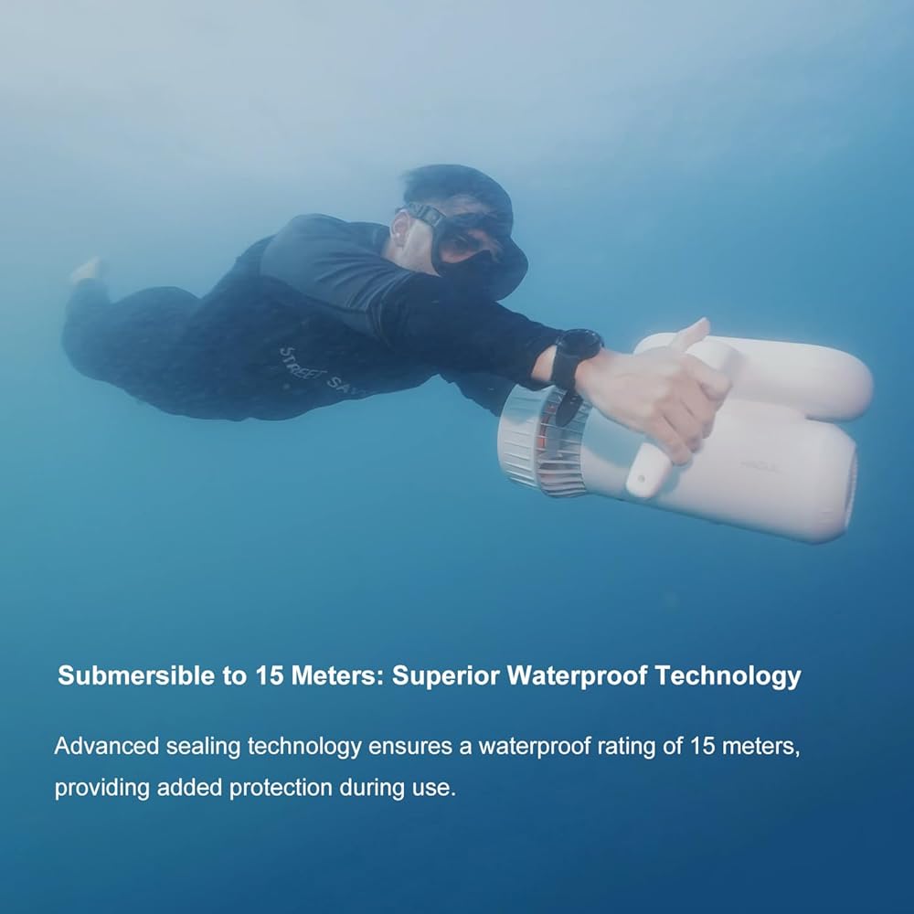 إمكانية الوصول لجميع الأعمار: تم تصميم سكوتر البحر هذا لكل من البالغين والأطفال. إنها مناسبة لجميع المستويات، من المبتدئين إلى الغواصين المتقدمين، وتوفر طريقة آمنة وسهلة لاستكشاف العالم تحت الماء.