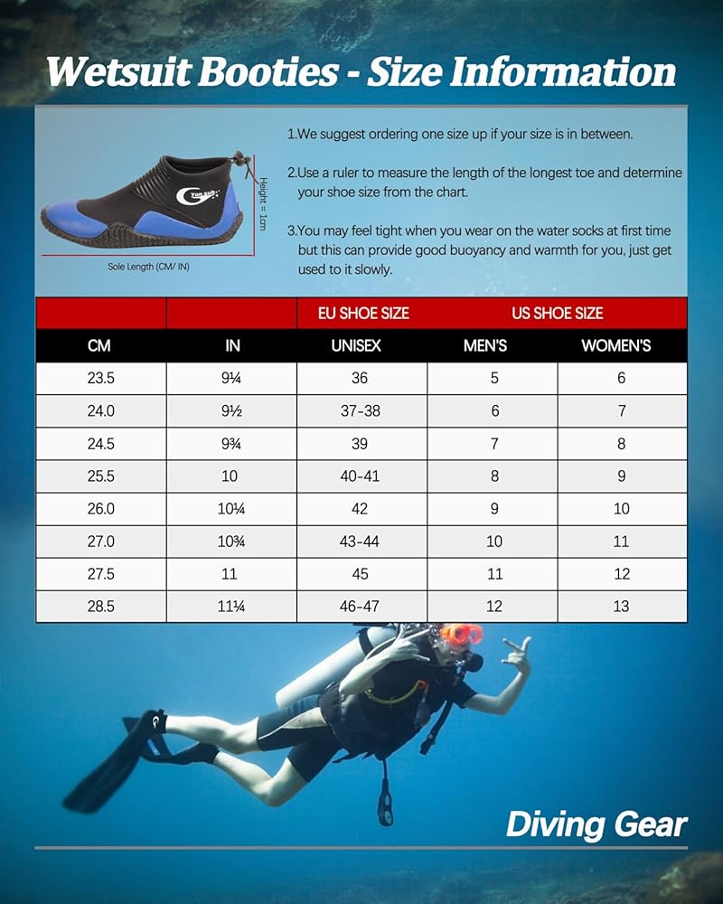 خدمة رائعة: أحذية الغوص DiNeop للرجال والنساء متاحة للرجال والنساء بالمقاس الأمريكي 5 ~ 12، يرجى اختيار المقاس وفقًا لطول قدميك والرجوع إلى جدول المقاسات الخاص بنا، ومع ذلك، نظرًا لاختلاف شكل قدم كل شخص وقياس التسامح ±1 سم مسموح به، إذا لم تكن راضيًا تمامًا عن عملية الشراء الخاصة بك، فيرجى ببساطة الاتصال بنا بحرية، وسوف نقدم لك بديلاً أو استرداد أموالك، انقر فوق "أضف إلى العربة" الآن!