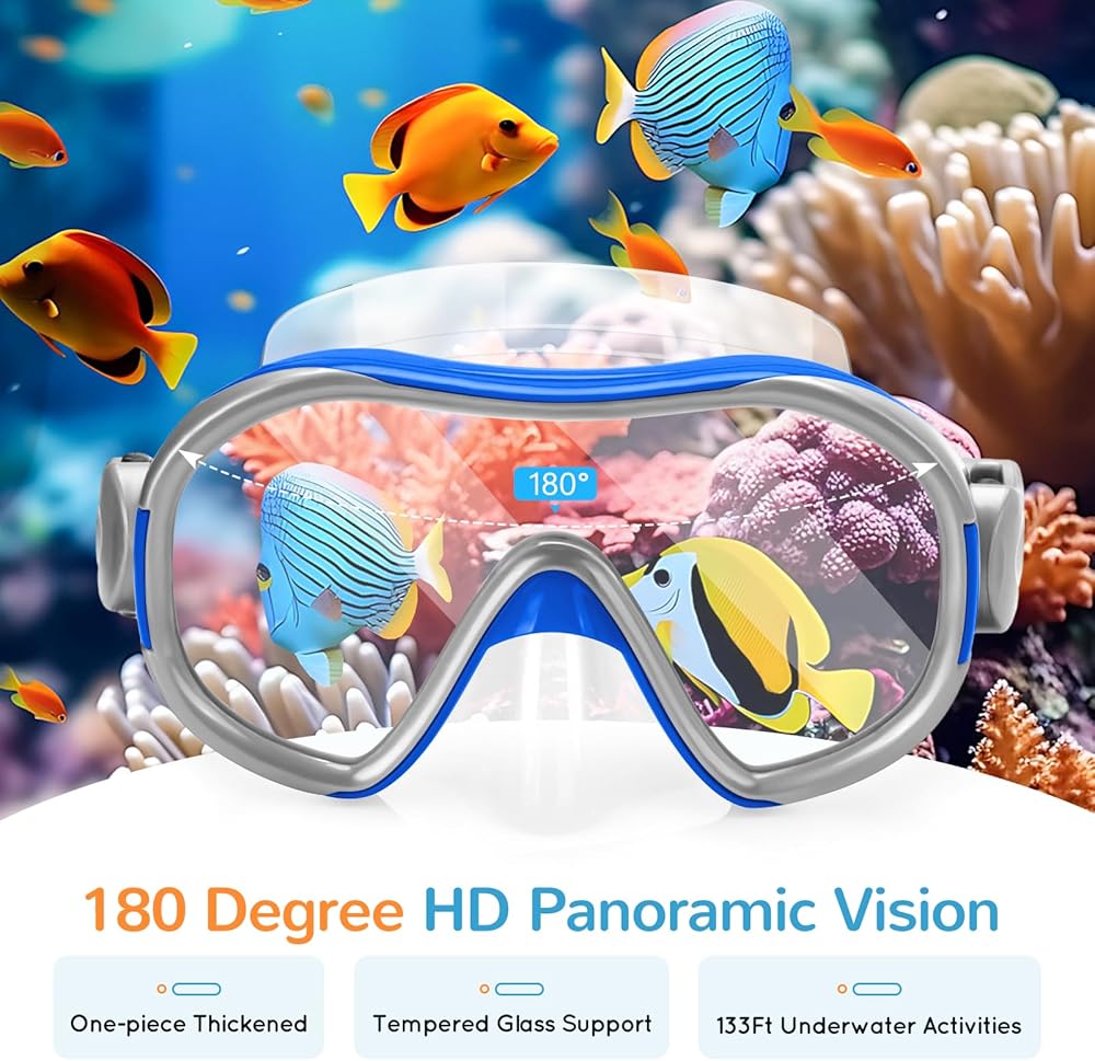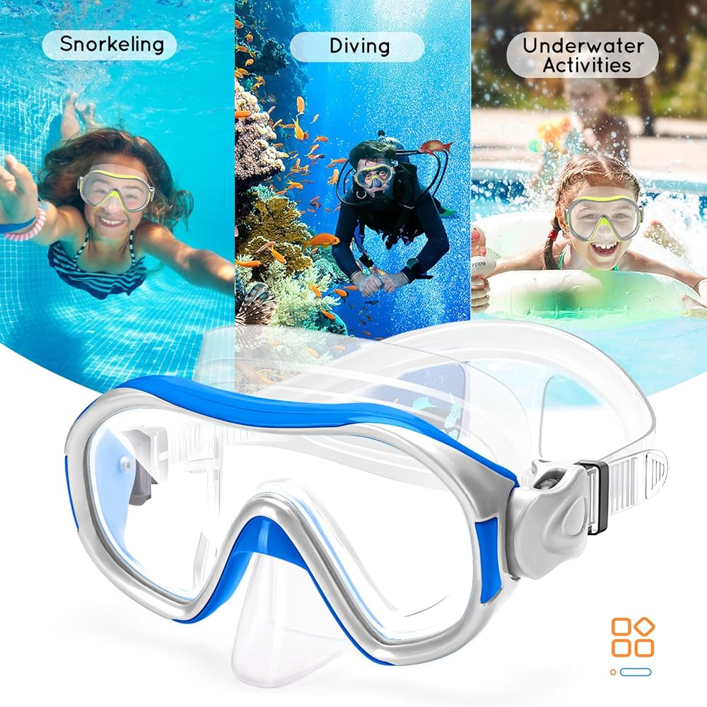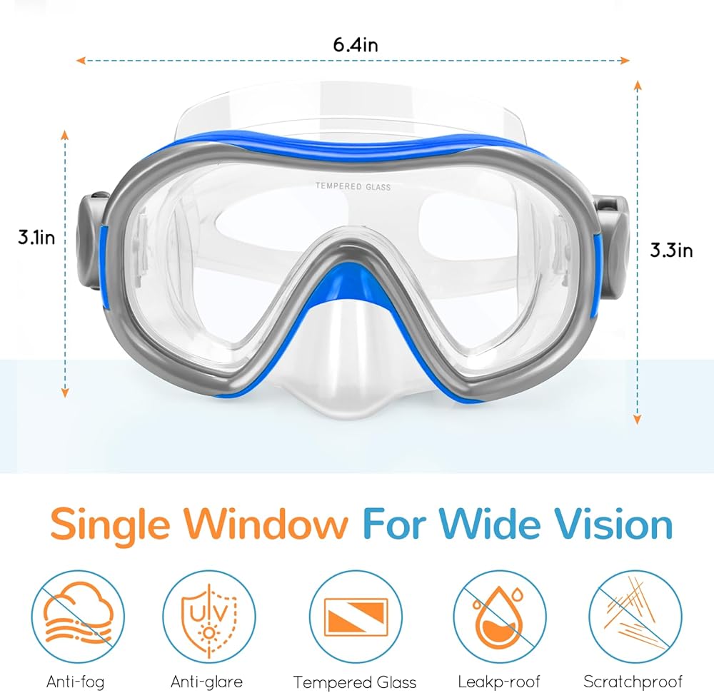 REYMOOK Diving Mask aims to solve these problems, we had researched and manufactured swimming goggles for more than 10 years. These swimming goggles with nose covers apply food-grade silicone to make the skirt and straps, adjustable buckles are made of high-quality and anti-corrosion ABS plastic, perfect for diving under the sea. One-piece tempered glass (exceeding impact test requirement of the American National Standard Z86.11-1985) not only can offer your 180-degree wide HD Panoramic View but also can hold big underwater pressure up to 131FT, suitable for suing in underwater activities. A dive mask with high-quality materials and exceeded testament, you can buy without worries.