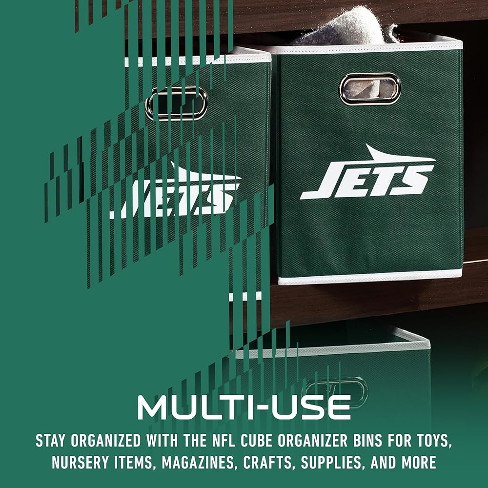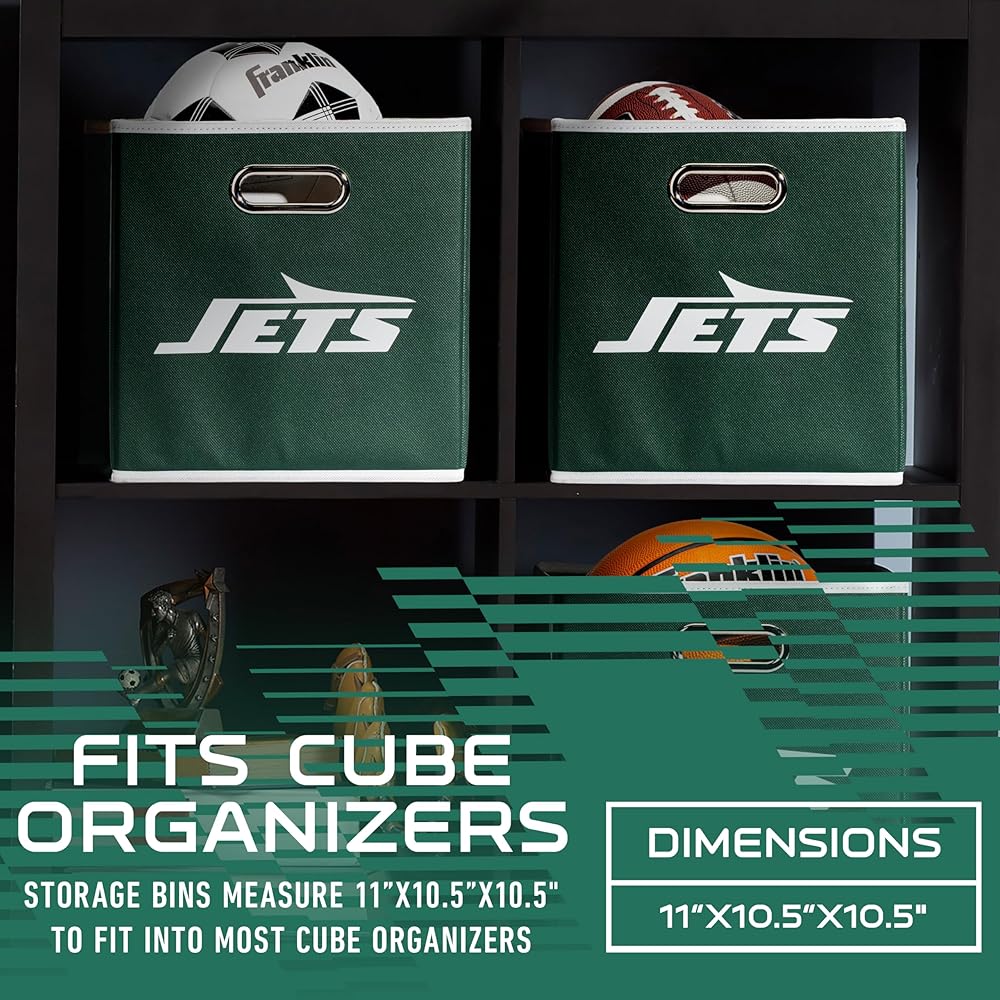 صناديق تخزين NFL من Franklin Sports - حاوية مكعبة قابلة للطي + سلة تخزين - مكتب NFL، غرفة النوم + ديكور غرفة المعيشة - 11 بوصة × 11 بوصة