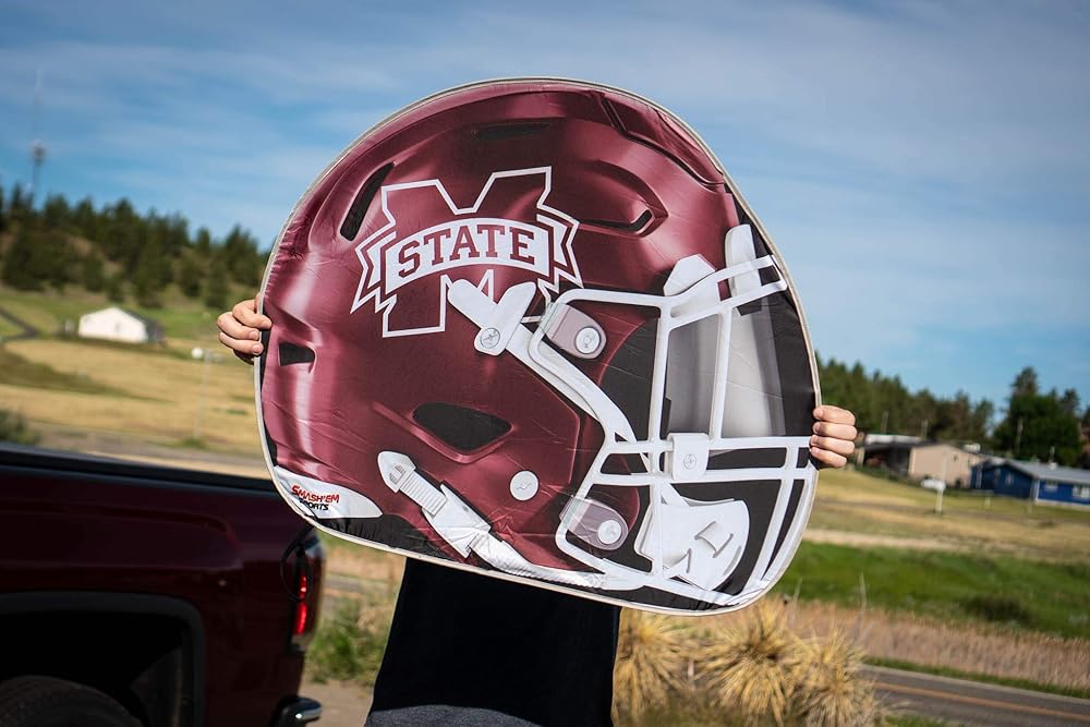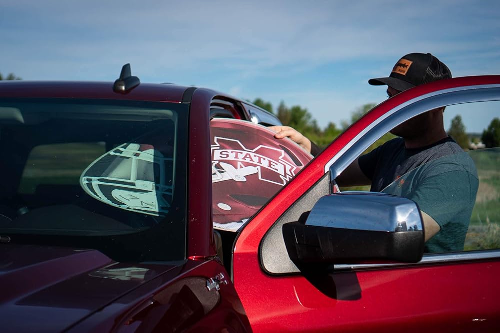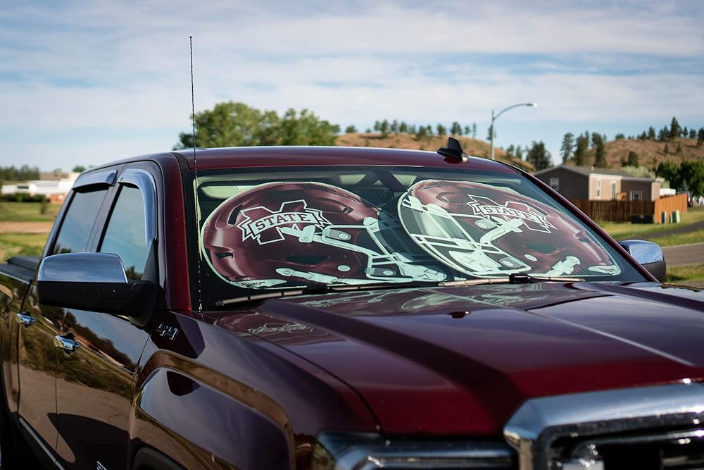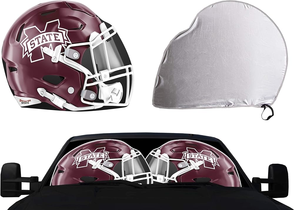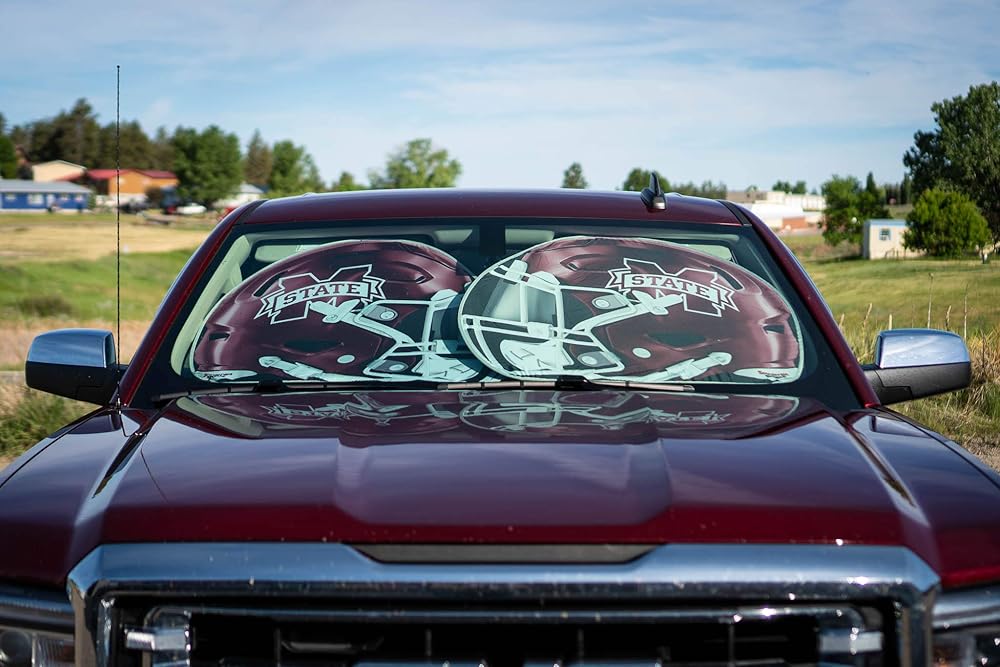 Smash the sun with Mississippi State University Bulldogs Sunshades! Tailgating in the hot sun? Keep your vehicle cool with this 2 pack of collegiate licensed football helmet shaped sunshades.