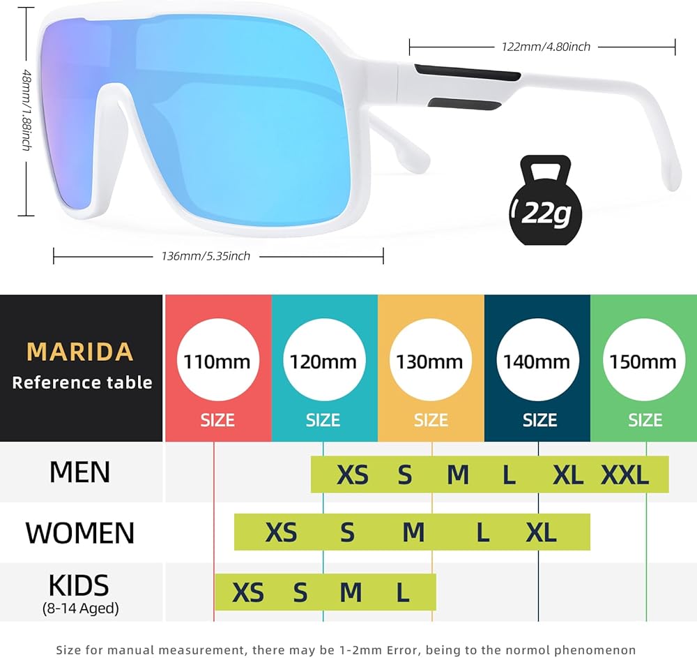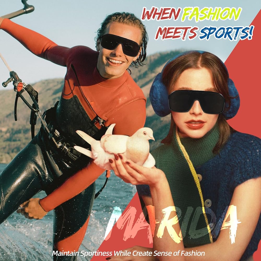 نظارات شمسية للرجال متعددة الوظائف: عندما تلتقي الموضة بالرياضة! يمكن استخدام نظارتنا الشمسية للرجال في مجموعة الأزياء وركوب الدراجات أو القيادة. الوظائف الزخرفية والرياضية تجعل نظارات MARIDA الرياضية للرجال خيارًا رائعًا للهدايا!