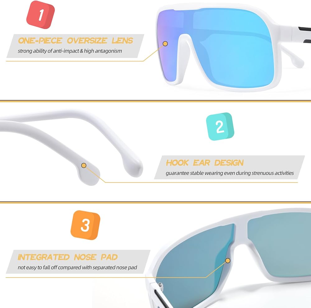 عدسات بولي كربونات مضادة للصدمات: عدسة كبيرة الحجم مقاومة للرياح من قطعة واحدة مصنوعة من مادة البولي كربونات بدرجة الطيران، مضادة للصدمات/مقاومة للرياح/مضادة للخدش/مقاومة للماء، مما يضمن ارتداء آمن ومريح.