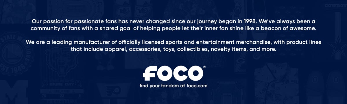There is no better way that to find your fan hood, than with the extensive line of FOCO officially licensed product. Find all your favorite teams in our ever-expanding offering of gear.