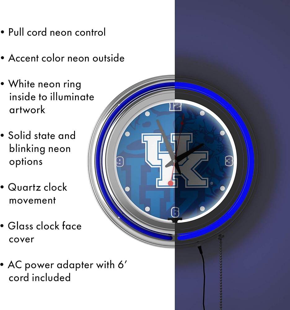 ساعة نيون كروم مزدوجة الدرجة من جامعة كنتاكي - تتلاشى