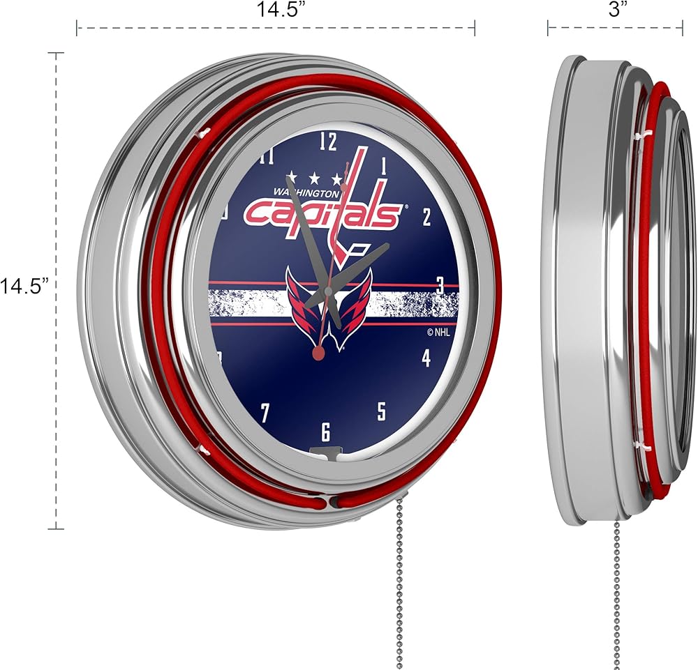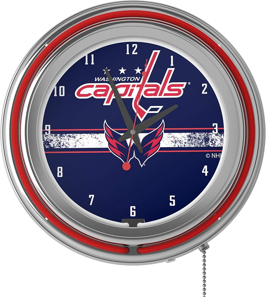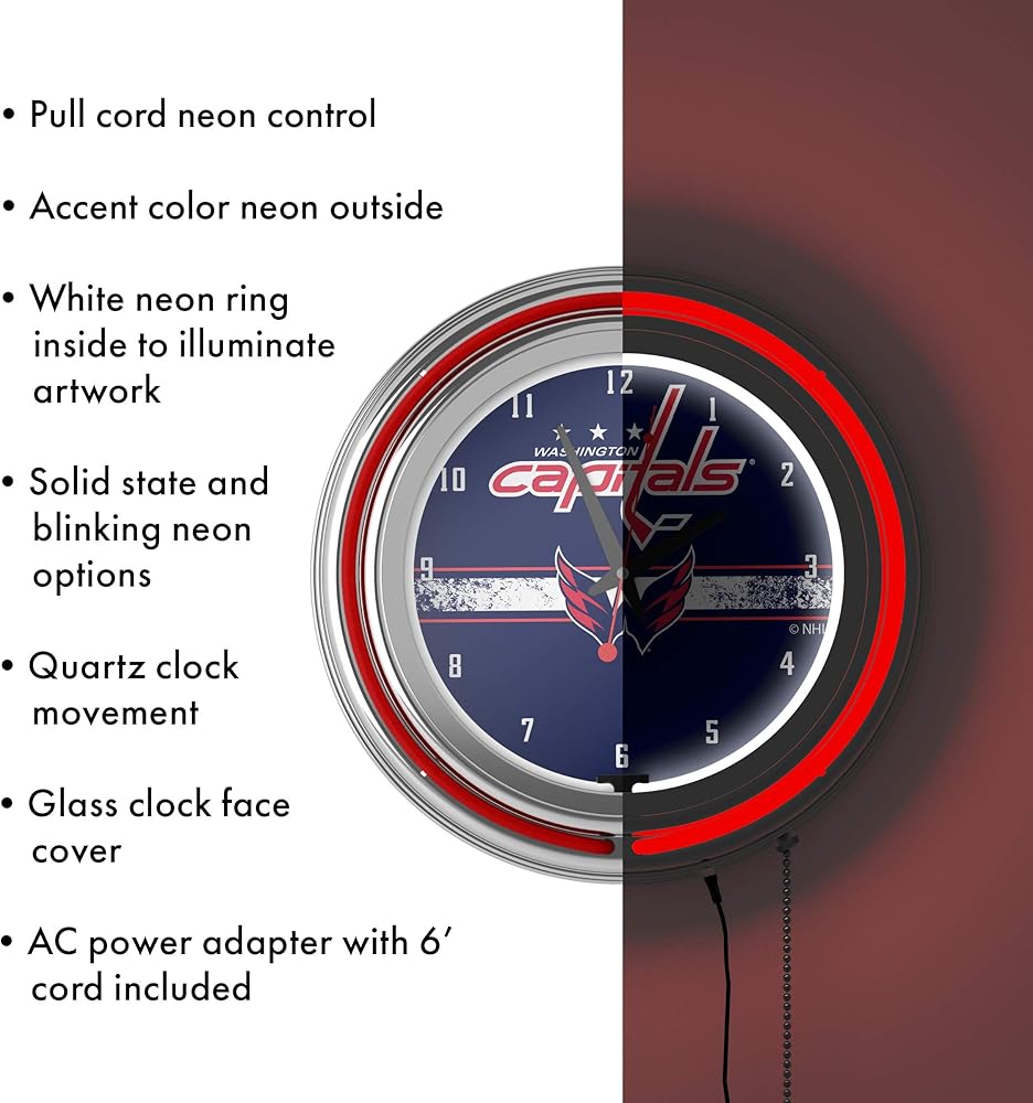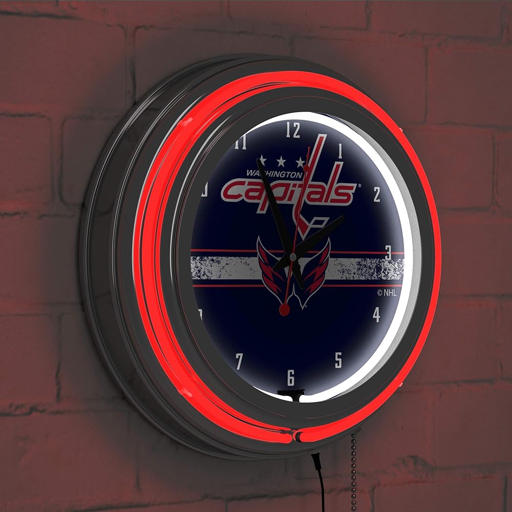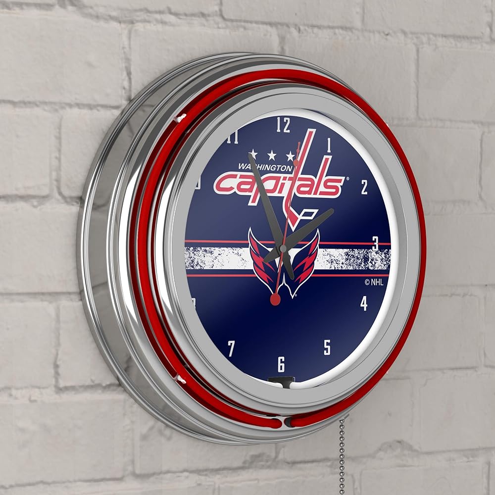 العلامة التجارية العالمية NHL Chrome Double Rung Neon Clock - واشنطن كابيتالز
