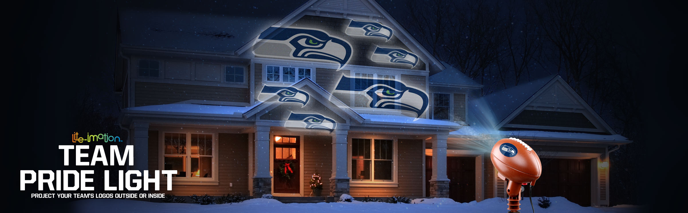 Show your team spirit with the officially licensed Team Pride Light! For indoor and outdoor use, this LED light projects your favorite teams logo over 50 feet! Included with light is a tripod for indoor use and a extra long lawn stake for outdoors. The Team Pride Light will shut off automatically after 8 hours.
