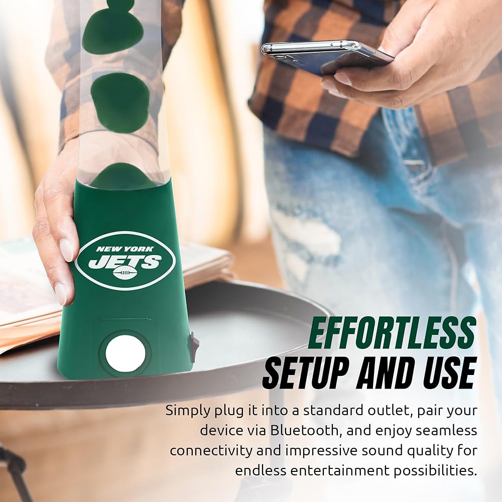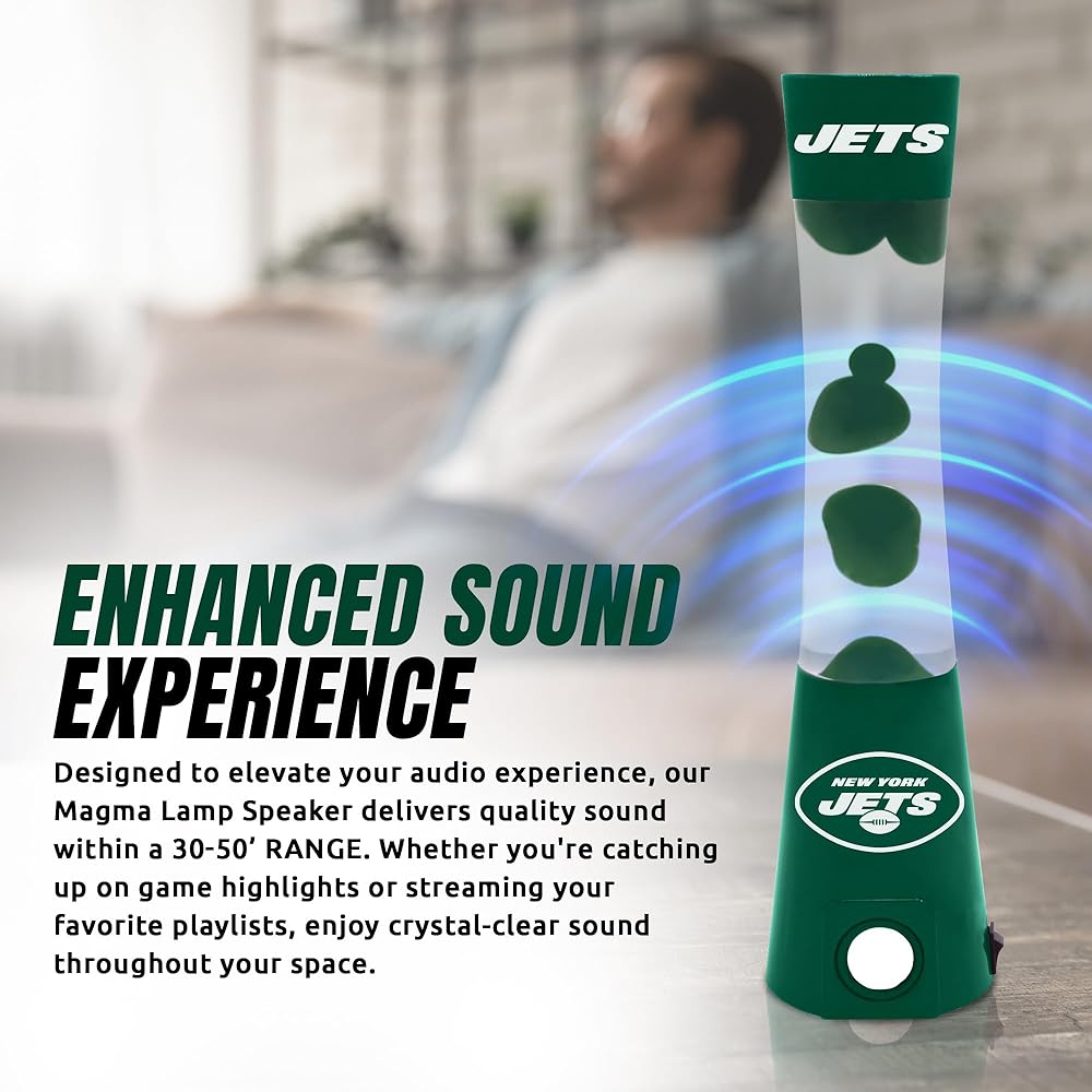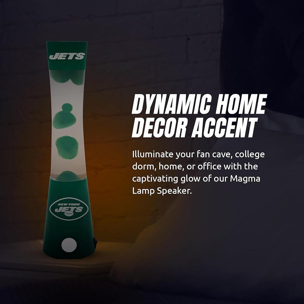 When it comes to adding the perfect touch to your favorite football team collection, this 2-in-1- Magma Lamp and Bluetooth Speaker makes the perfect addition to any room in the house. With unique and one-of-a-kind lighting and premium Bluetooth sound quality, you will never experience game days, music, podcast, or movies the same ever again. With virtually no setup required, the Magma Lamp is powered through a standard wall connection and uses a simple 30-watt bulb (included). Just plug it in, connect your devices, and enjoy hours of an audio/visual experience like youve never experienced! Approximately 16.5 inches tall. Made by Sporticulture.