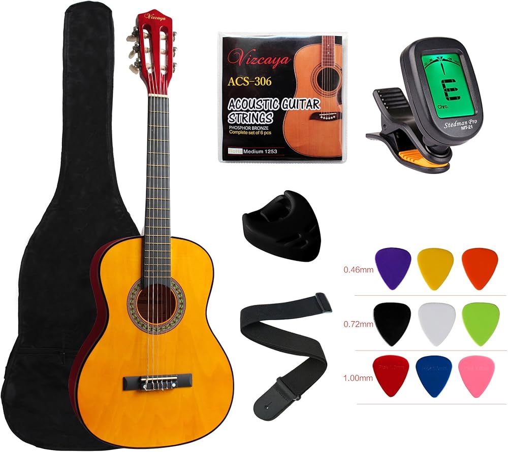 This beautiful YMC 34" Classical Guitar set is ideal for the beginning student, perfect for the young player to experience playing a guitar for the first time.