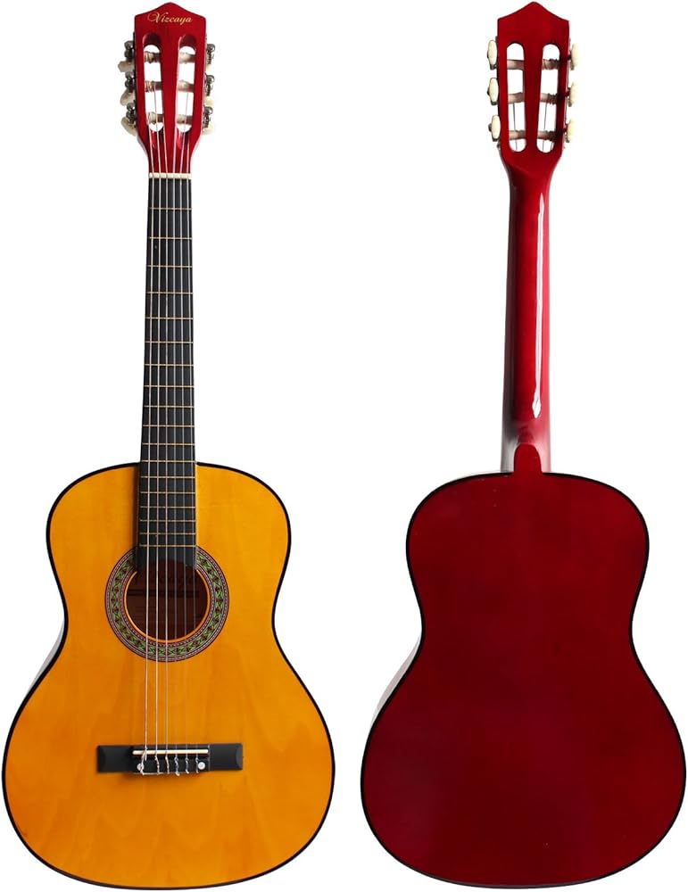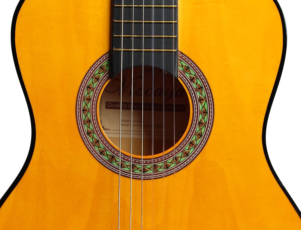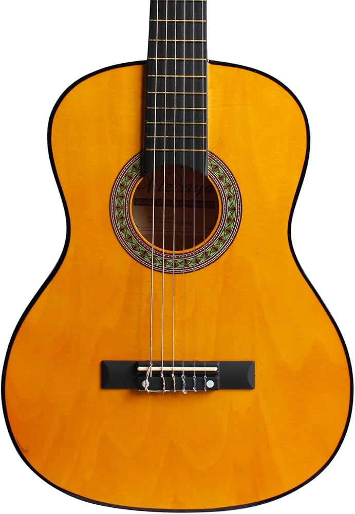 The 34”Classical Guitar has a loud and bright ringing tone that clearly projects to the listener.
