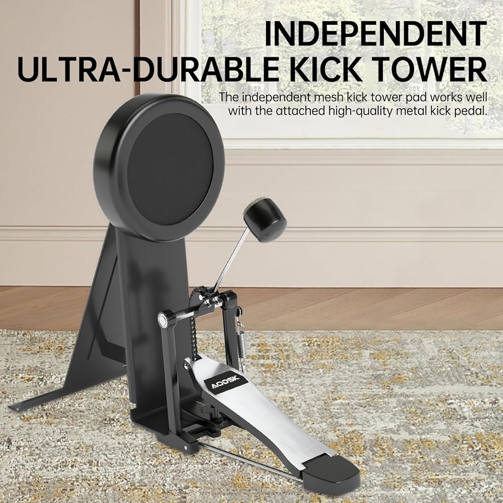【برج ركل مستقل فائق المتانة】تعمل وسادة برج الركل الشبكية المستقلة بشكل جيد مع دواسة الركل المعدنية المرفقة عالية الجودة. يمكن لجهاز الاستشعار عالي الحساسية تلبية 6 مستويات من تحفيز القوة واستعادة الشعور الحقيقي لقرع الطبل بشكل أفضل.