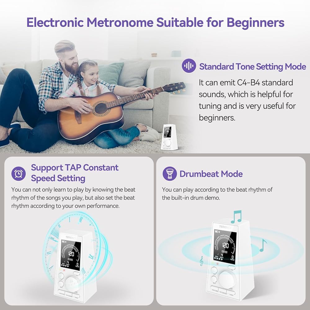 • بندول الإيقاع المستخدم على نطاق واسع: يدعم بندول الإيقاع الرقمي نطاق الإيقاع 30-252 نبضة في الدقيقة، وهو مجهز بـ 9 أنواع إيقاع و8 إيقاعات، يلبي متطلبات العزف على جميع الآلات الموسيقية مثل البيانو والجيتار والكمان والباس. علاوة على ذلك، يتم دعم وضع إيقاع الطبل، ويمكن أيضًا تشغيله بإيقاع عرض الطبل المدمج