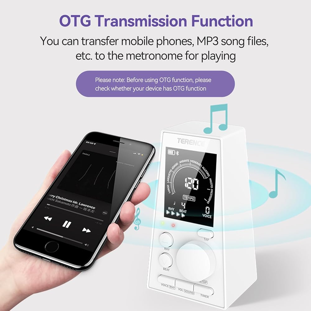 • وظيفة نقل OTG وتشغيل بسيط: لا تحتاج إلى تشغيل معقد. اضغط على زر الوظيفة المقابل لضبط الإيقاع والسرعة المطلوبة وبدء التدريب. بالإضافة إلى ذلك، فإنه يوفر أيضًا وظيفة توقيت التدريب، والتي تمكن العملاء من وضع الخطط والممارسة بكفاءة. يدعم وظيفة OTG، ويمكنه نقل الأغاني وملفات الهواتف الذكية وMP3 إلى بندول الإيقاع للعب (ملاحظة: يرجى توصيل الأجهزة المجهزة بوظيفة OTG). من فضلك إفهم