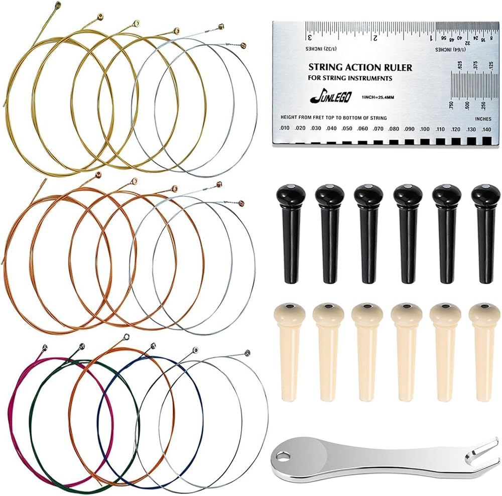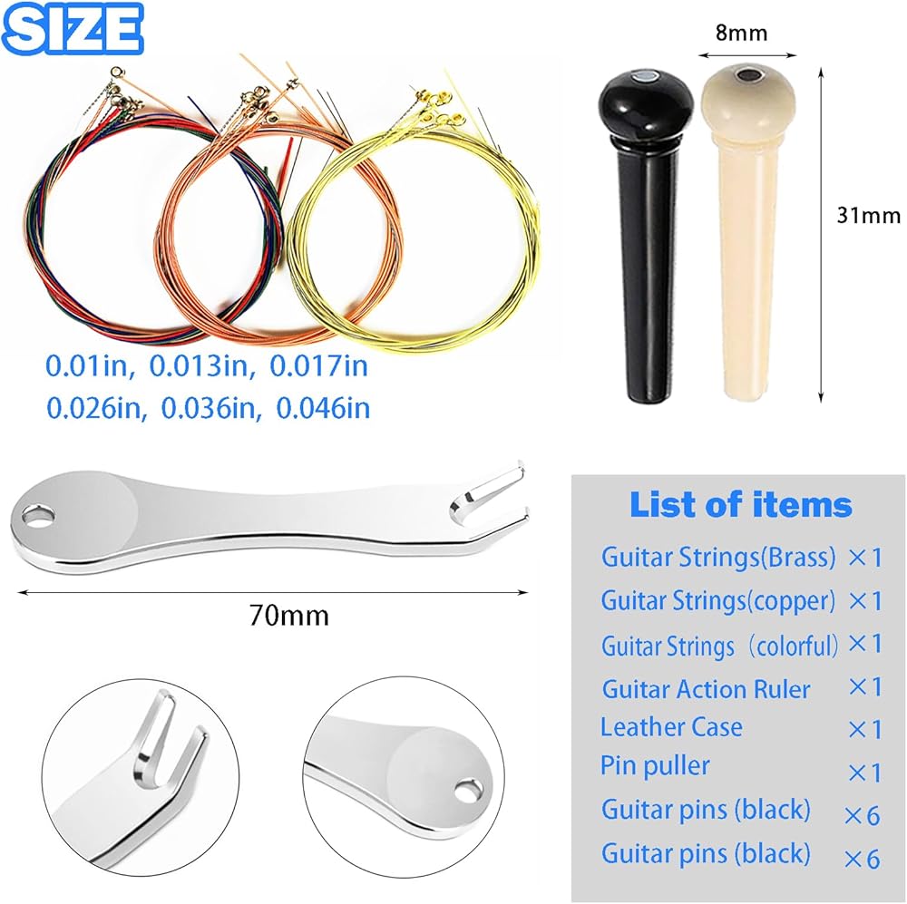 This set of acoustic guitar strings kit tools, perfect for novice guitarists and guitarists to replace old guitars, or guitar refurbishment needs, easy to carry some of the use of the tool kit.These silk and steel acoustic guitar strings are just for you.