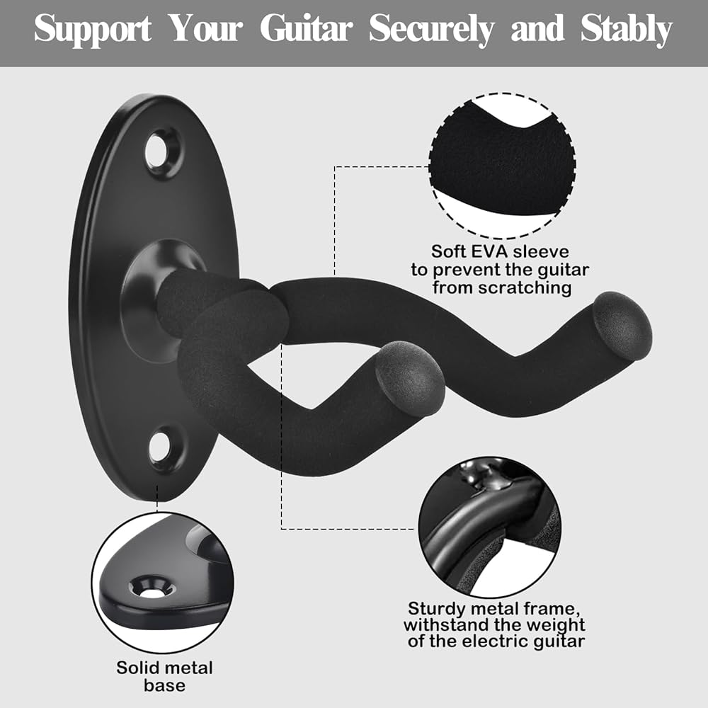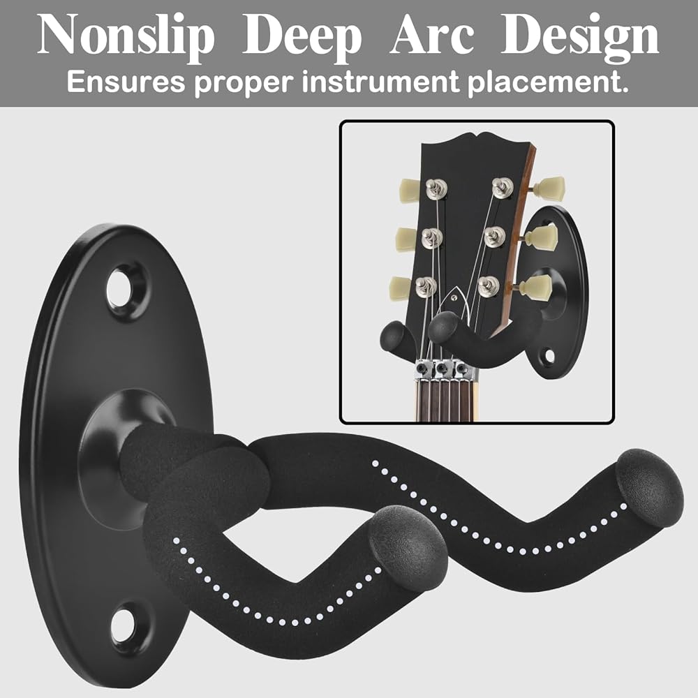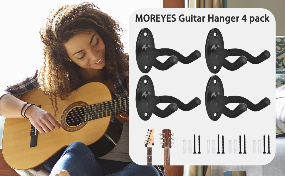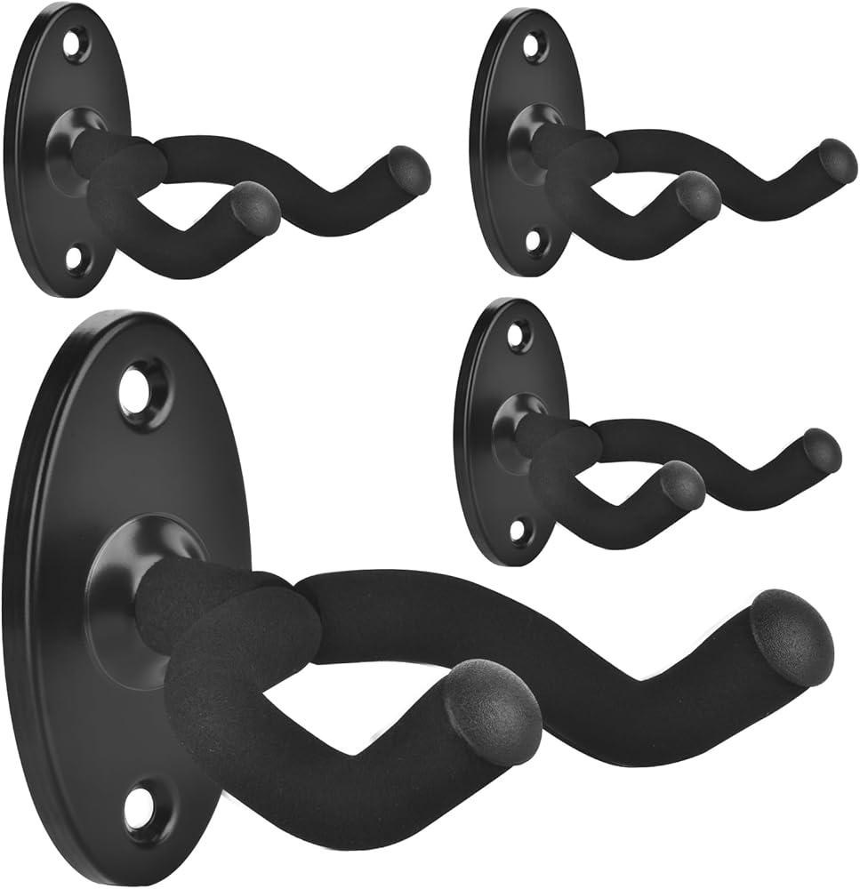 حامل جدار جيتار من مورييس، شماعة جيتار مع وسادة ناعمة قابلة للتدوير لجميع أحجام الجيتار، شماعة حائط جيتار معدنية صلبة على شكل حرف U للجيتار الصوتي، جيتار كلاسيكي، باس، جيتار كهربائي، 4 عبوات