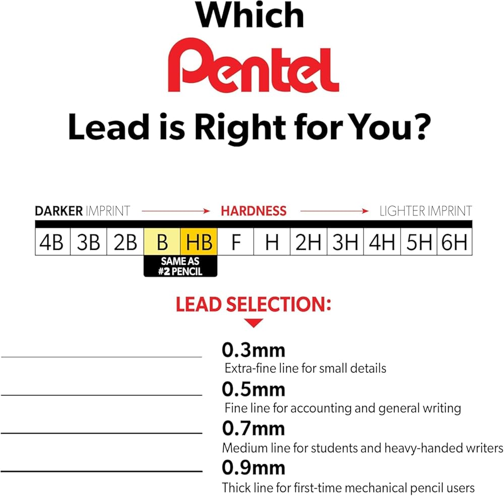 • Pentel Super Hi-Polymer HB lead is equivalent to a #2 Pencil, guaranteed to scan on tests, resists breaking and never needs sharpening