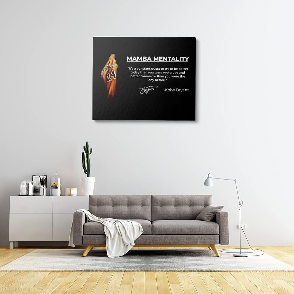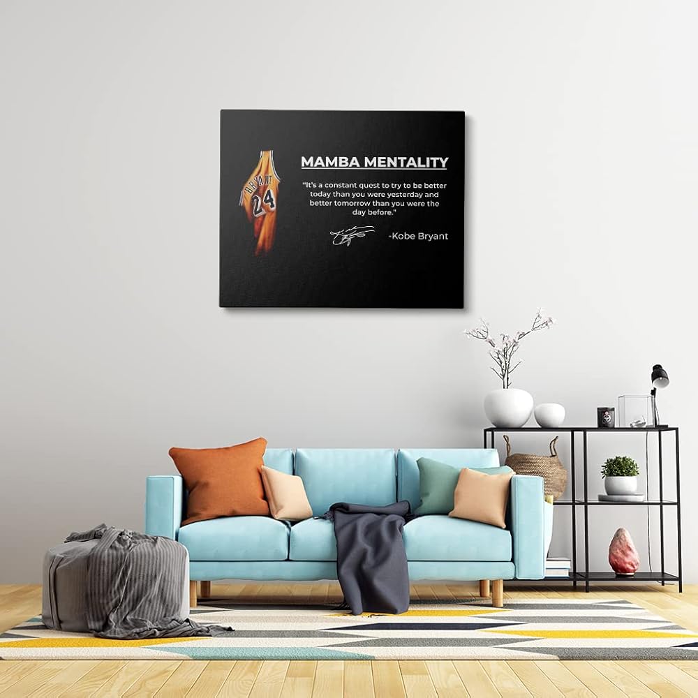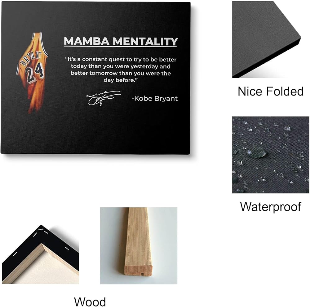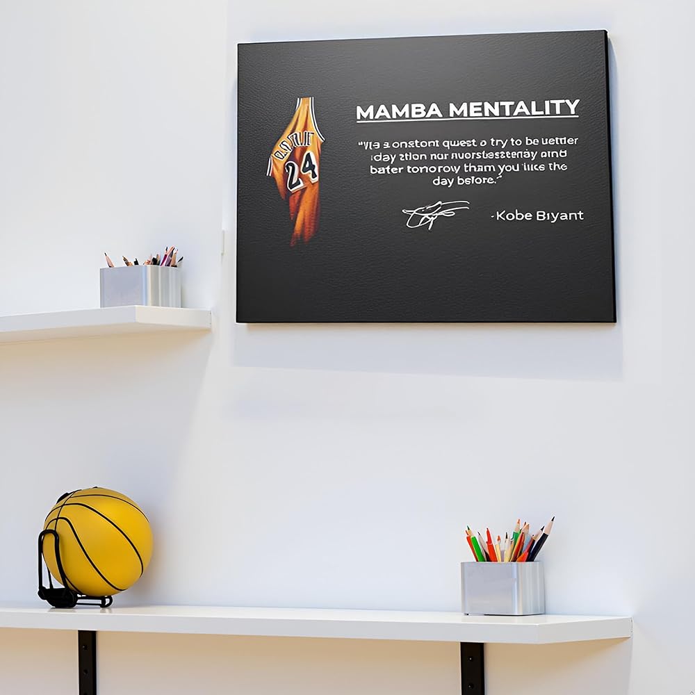 صورة كوبي براينت الأيقونية: يتميز هذا الملصق القماشي المذهل بكوبي براينت في زيه الأيقوني، إلى جانب "عقلية مامبا" القوية وتوقيعه. تحية مثالية للاعب كرة السلة الأسطوري.