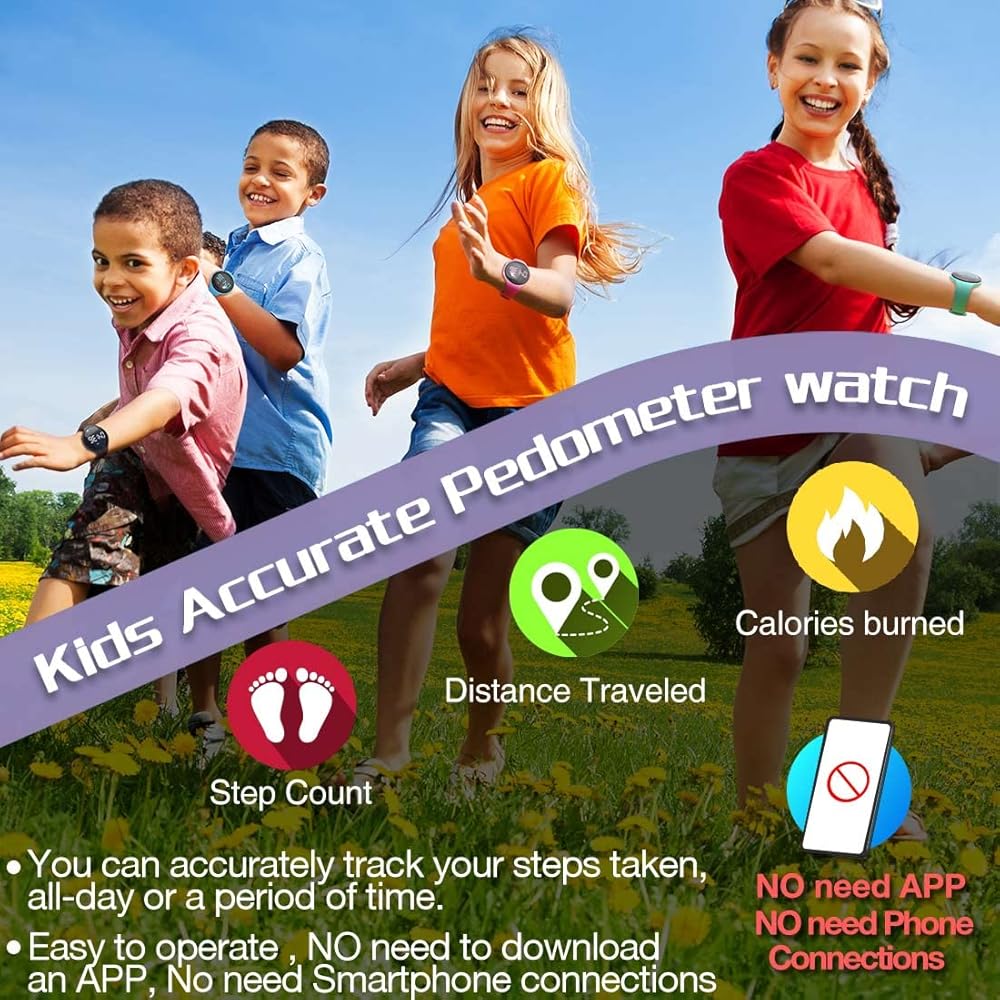 【 Accurate Pedometer Watch 】: NO need to contect smartphone or download a APP. The watch with a highly sensitive 3D acceleration sensor will automatically accurate to track your kids all-day or a period of time steps, makes fitness fun for your kids;