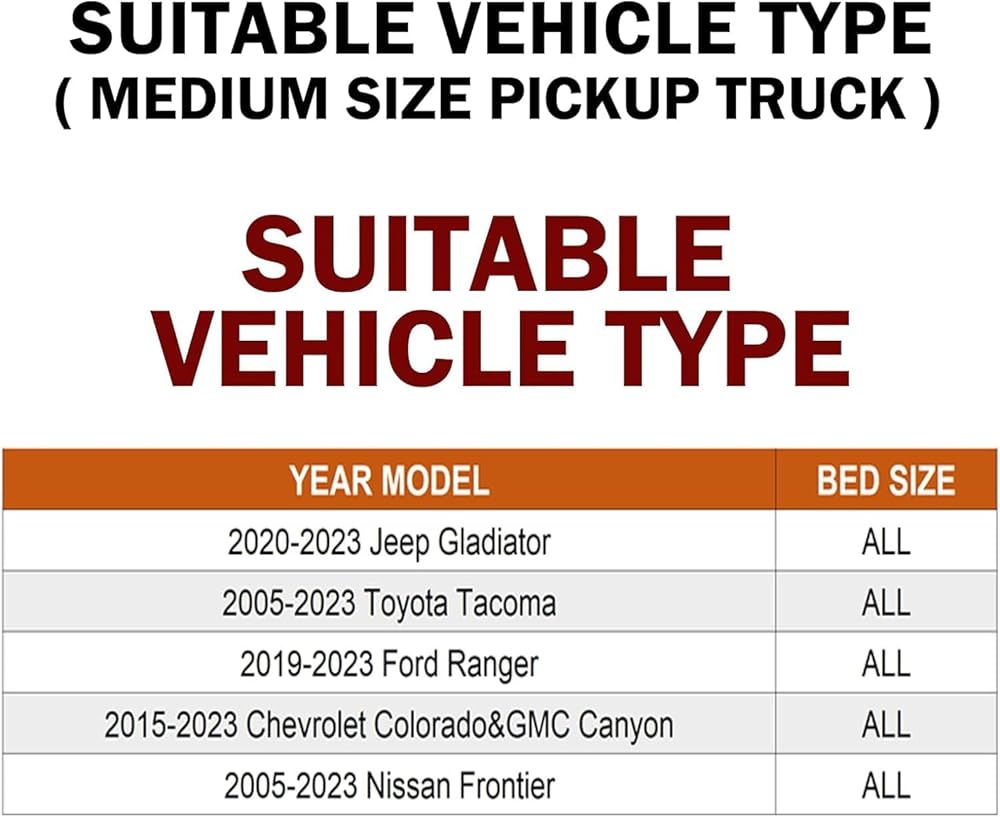 • متوافق مع 2005-2024 تاكوما/2019-2023 رينجر/2005-2023 فرونتير/2015-2023 كولورادو/2015-2023 كانيون/2020-2024 غلاديتور JT.