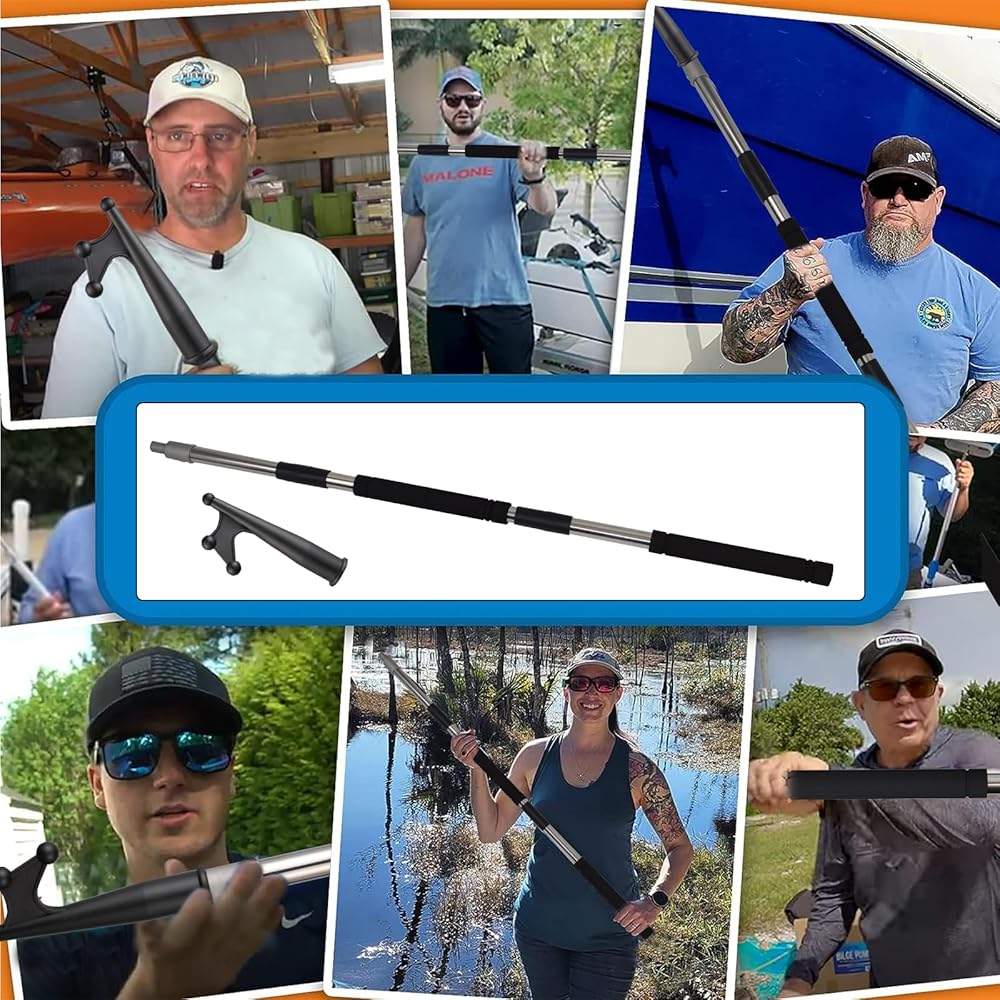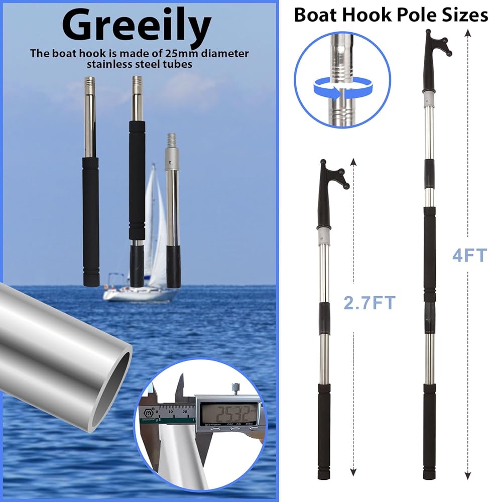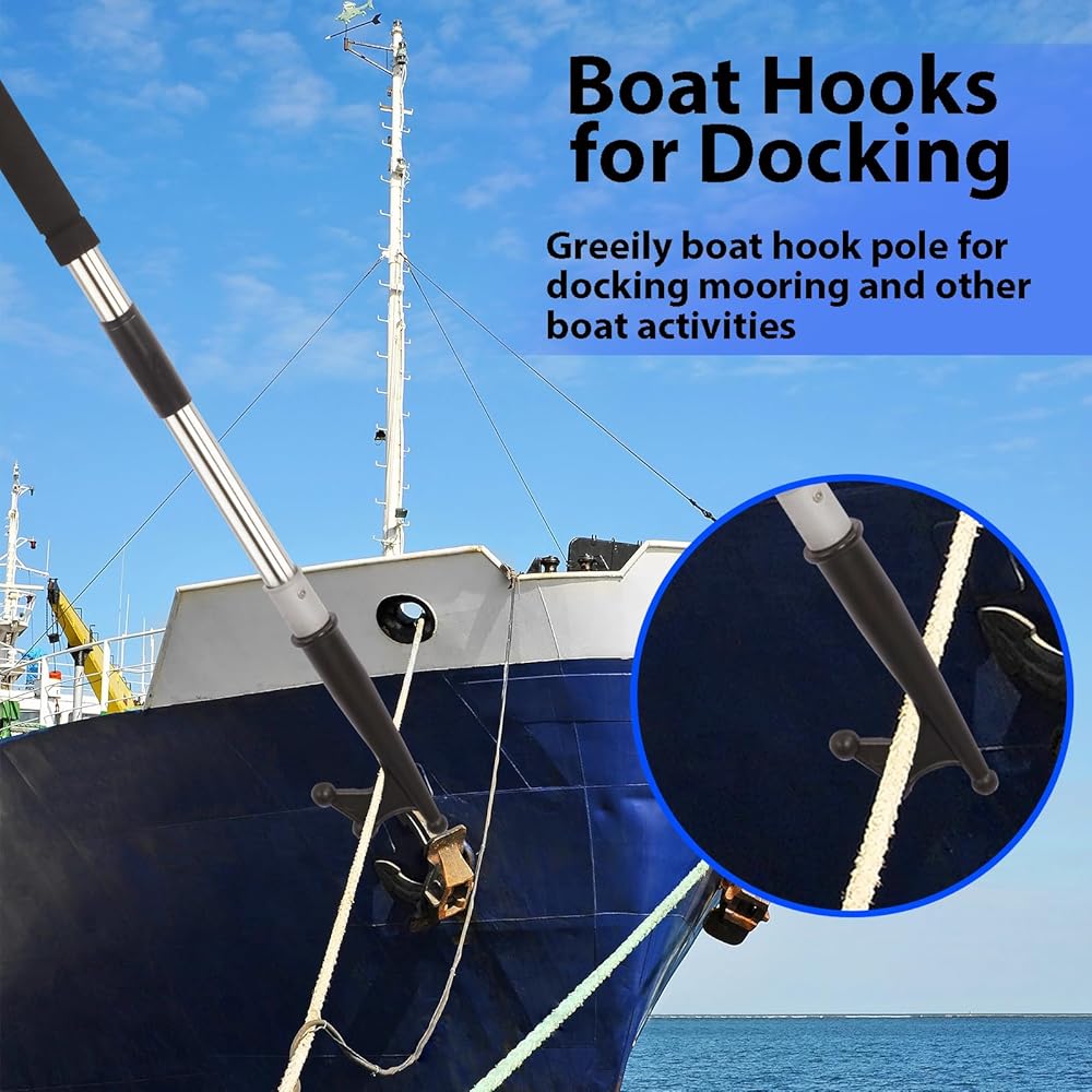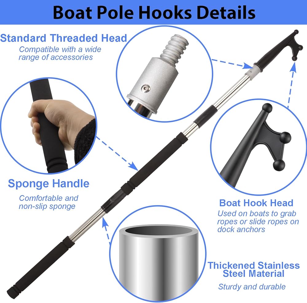 The boat hook for docking, splicing and floating adjustment can extend from 48inch dock pole tube of multipurpose ship is made of stainless steel, which is very strong and does not rust.