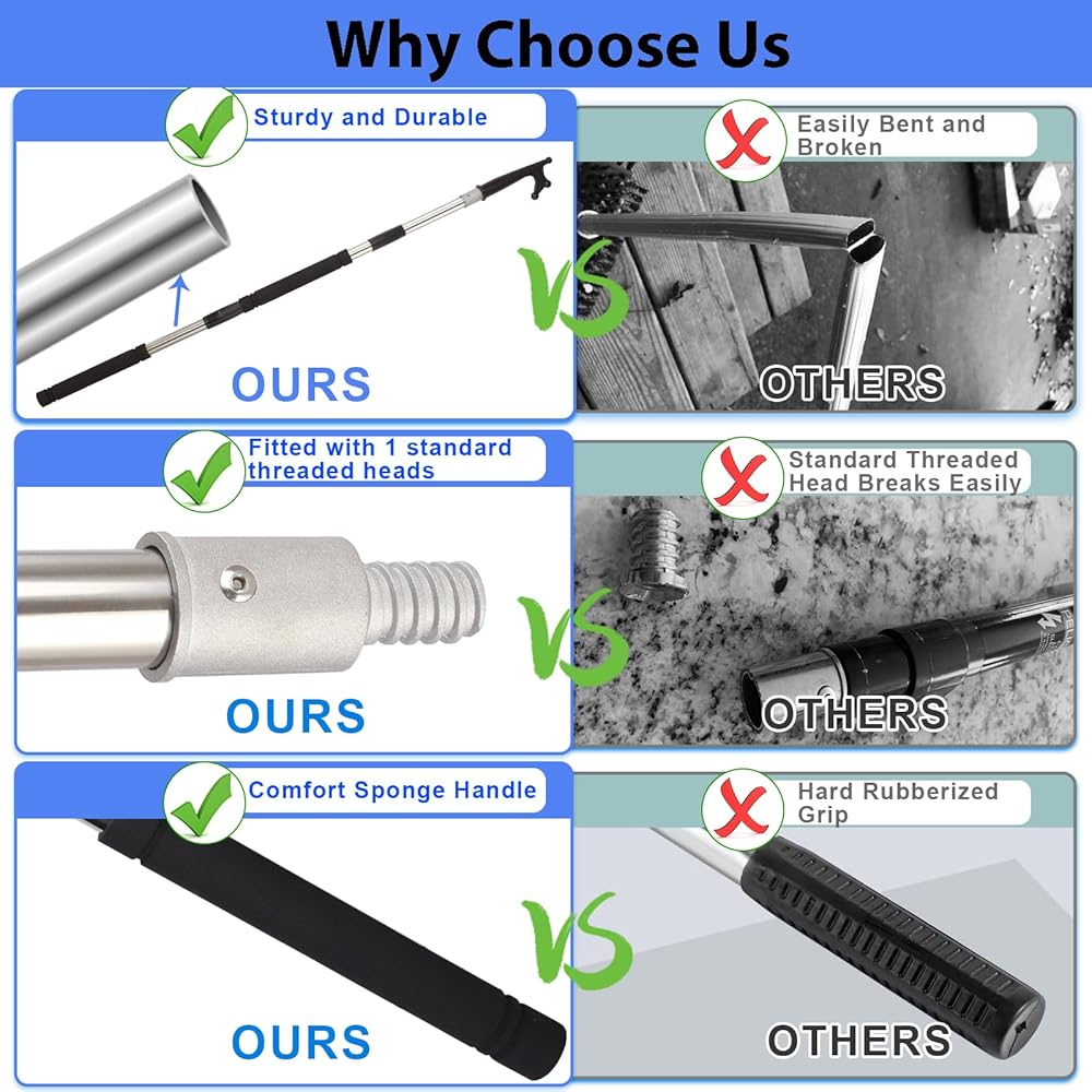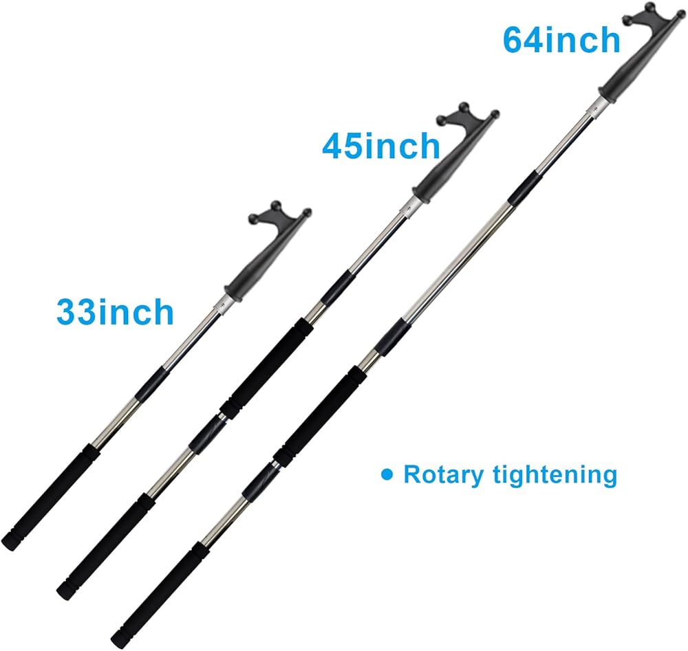 This allows for a sturdy and confident reach. Smooth hook design means no scratching when in use.It can be extended from 47 inches to 140 inches, or anywhere in between.With the standard 18mm threaded connection design, our thickened stainless steel pipes can be used with fish hooks and tools with 18mm threaded heads.