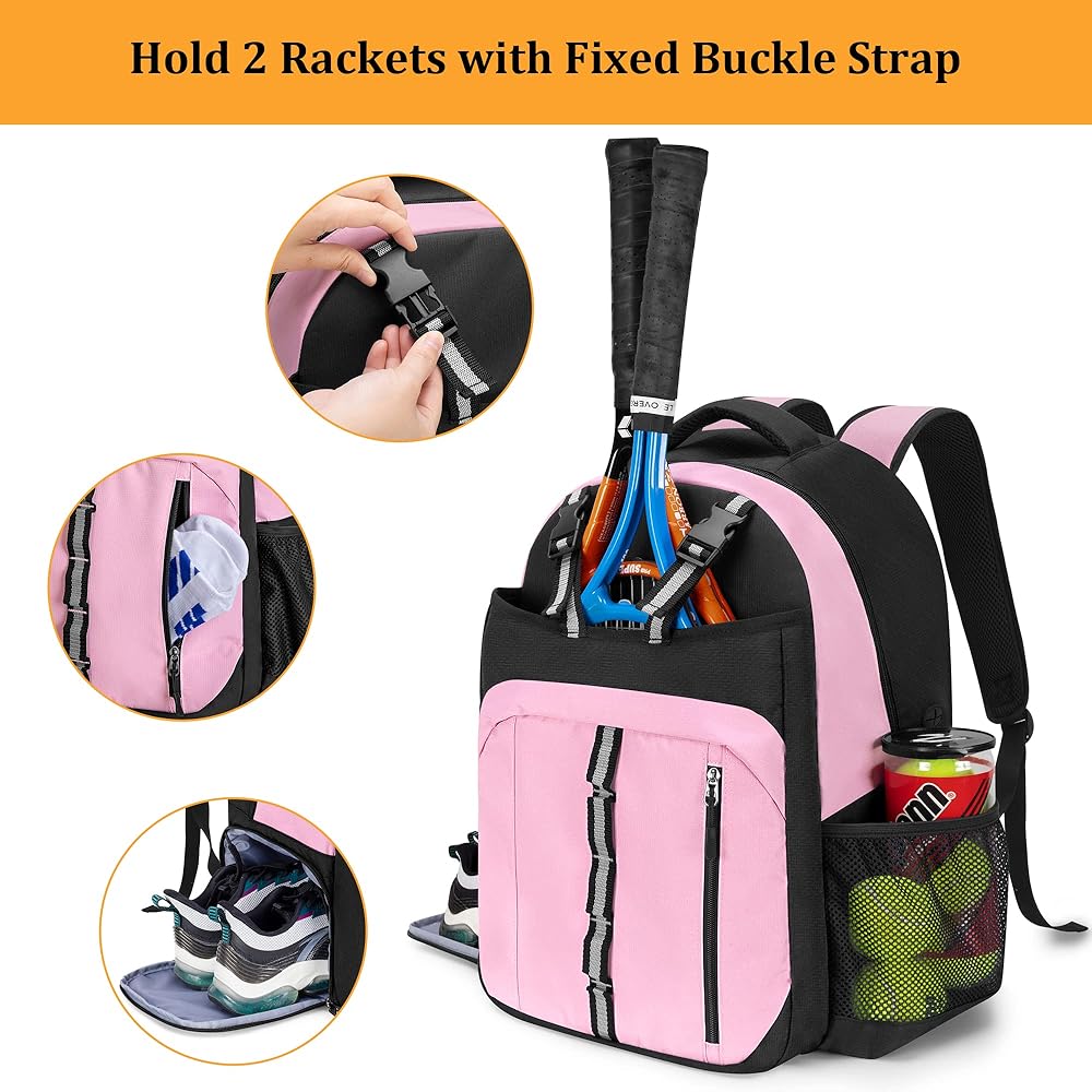 تصميم فاخر: يمكن للحقيبة الأمامية أن تحمل ما يصل إلى 2 مضارب تنس. تعمل أحزمة الإبزيم الأمامية المطورة والتصميم المبطن على تثبيت مضاربك في مكانها دون اهتزازها ومنعها من التلف.