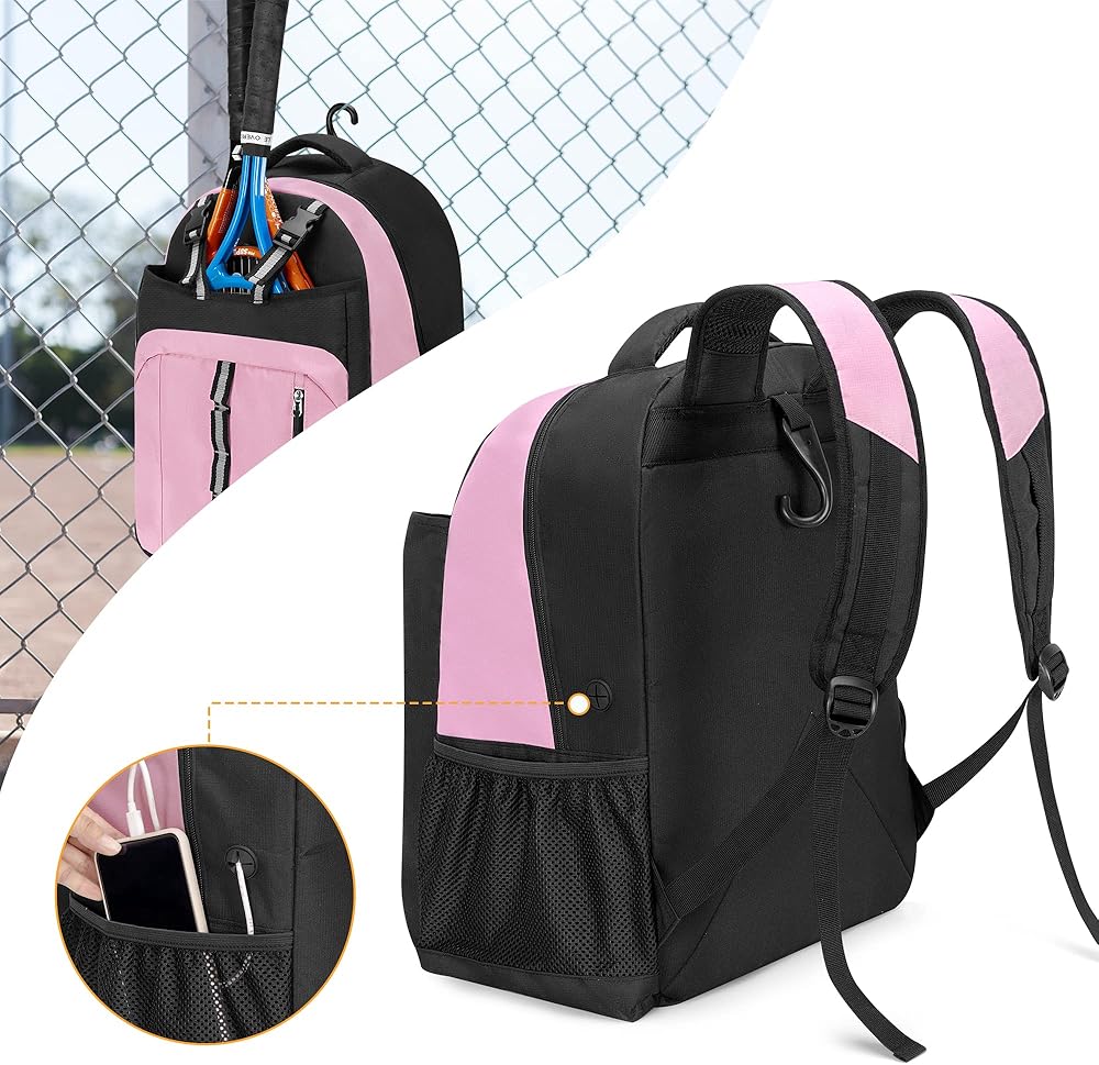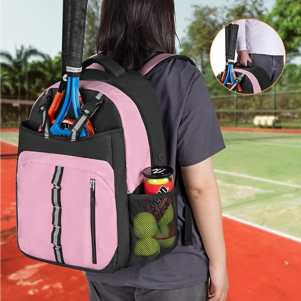 تصميم مريح: تتميز حقيبة التنس بخطاف سياج متكامل للمخبأ. توفر أحزمة الكتف المبطنة والمقبض تجربة حمل مريحة.