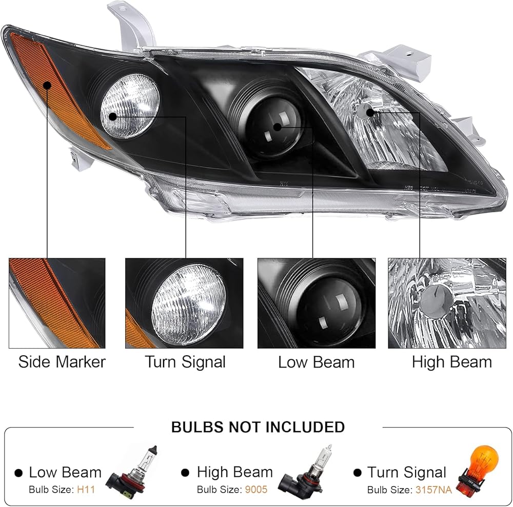 مجموعة مصابيح أمامية متوافقة مع 2007 2008 2009 07 08 09 Toyota Camry الركاب وجانب السائق