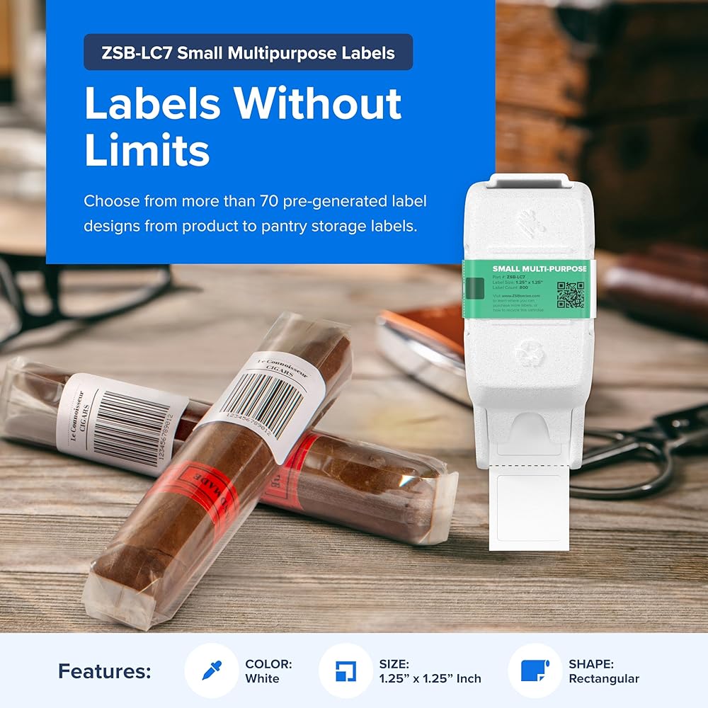 ملصقات سلسلة ZEBRA ZSB - ورق ملصقات للطابعة يعتمد على نشا البطاطس - خرطوشة ملصقات قابلة لإعادة التدوير للملصقات - ملصقات لاصقة متعددة الاستخدامات قائمة على السحابة للطابعة - متعددة الأغراض، 1.25 بوصة × 1.25 بوصة