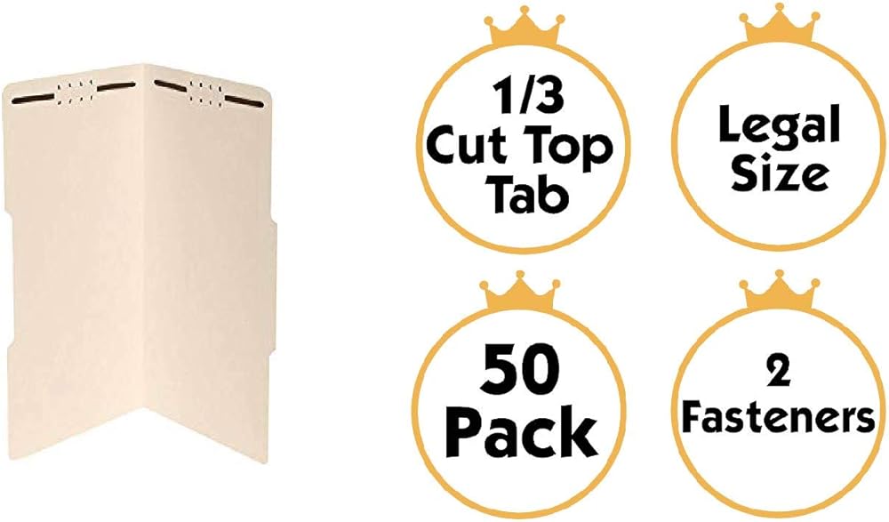 ذا فايل كينغ مجلد ملفات مانيلا مع مثبتات | الحجم القانوني - صندوق من 50 قطعة | 1/3 شريط علوي مقطوع في أوضاع متنوعة | شوكات متينة 2 انش | تنظيم المخططات والسجلات القانونية والاعمال الورقية