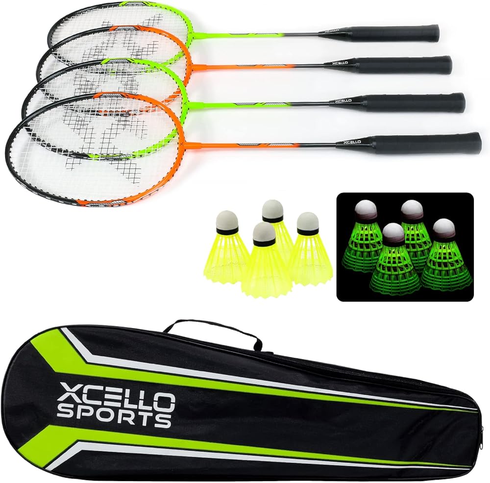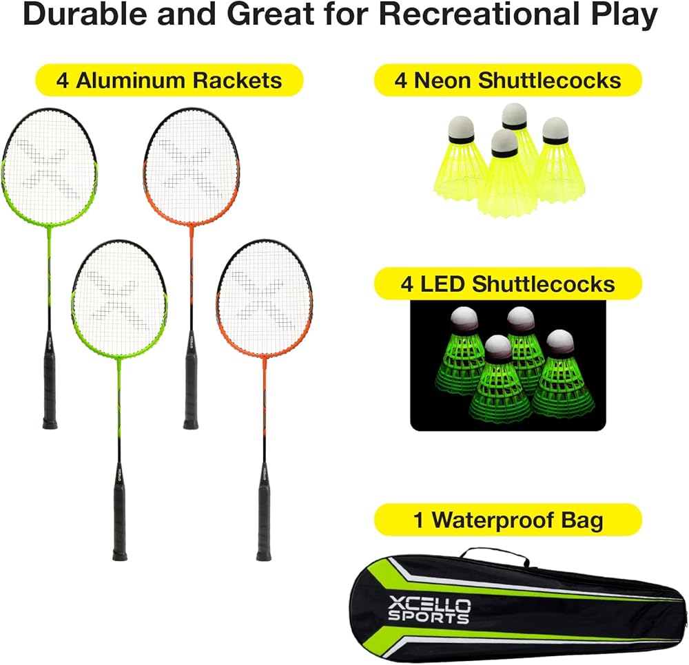 مجموعة كاملة - تتضمن مجموعة كرة الريشة هذه 4 مضارب (2 برتقالي، 2 أخضر)، 8 كرات الريشة (4 أصفر نيون، 4 LED) وحقيبة حمل!