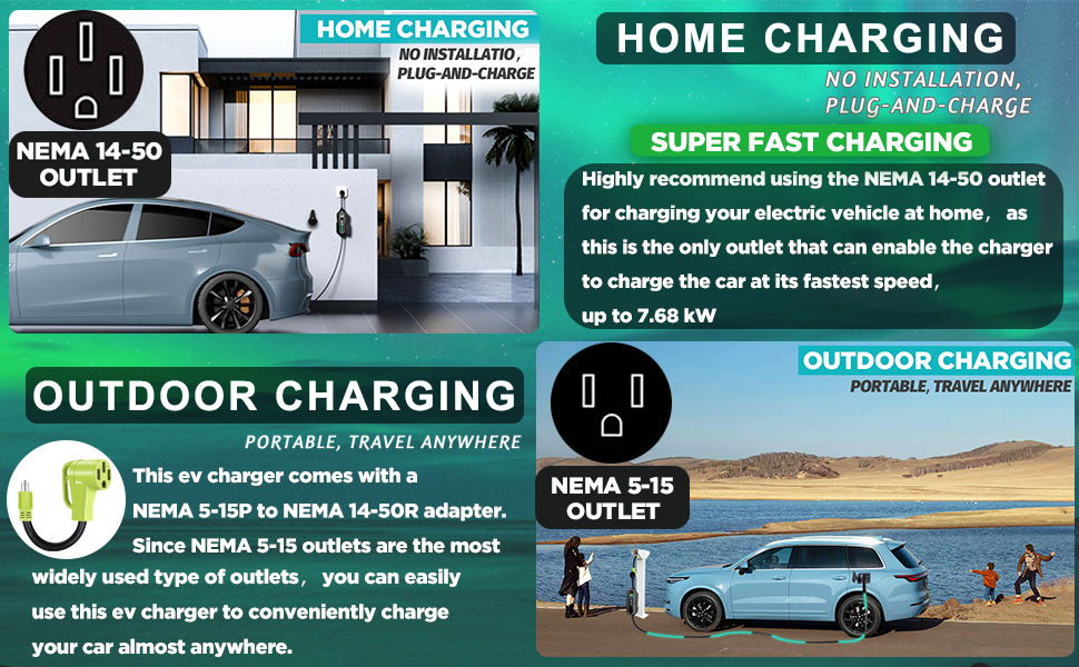 【2 في 1. متنقل ومثبت على الحائط】: شاحن EV مثبت على الحائط في مرآب المنزل والذي يمكن استخدامه أيضًا كشاحن EV محمول للسفر، بفضل حجمه الصغير. مع طول كابل 25 قدم، فإنه يوفر استخدامًا مرنًا. مع شهادة CE وشهادة FCC وتقرير السلامة UL، فإن شاحن EV الخاص بنا أكثر أمانًا وموثوقية لشحن سيارتك الكهربائية