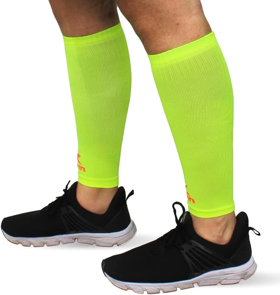أكمام ضغط صلبة من Muvin للرجال والنساء - الجري، الرياضة - جبائر الساق، آلام الساق، تخفيف آلام العضلات (L، أصفر)