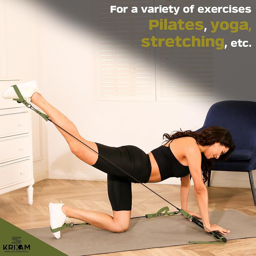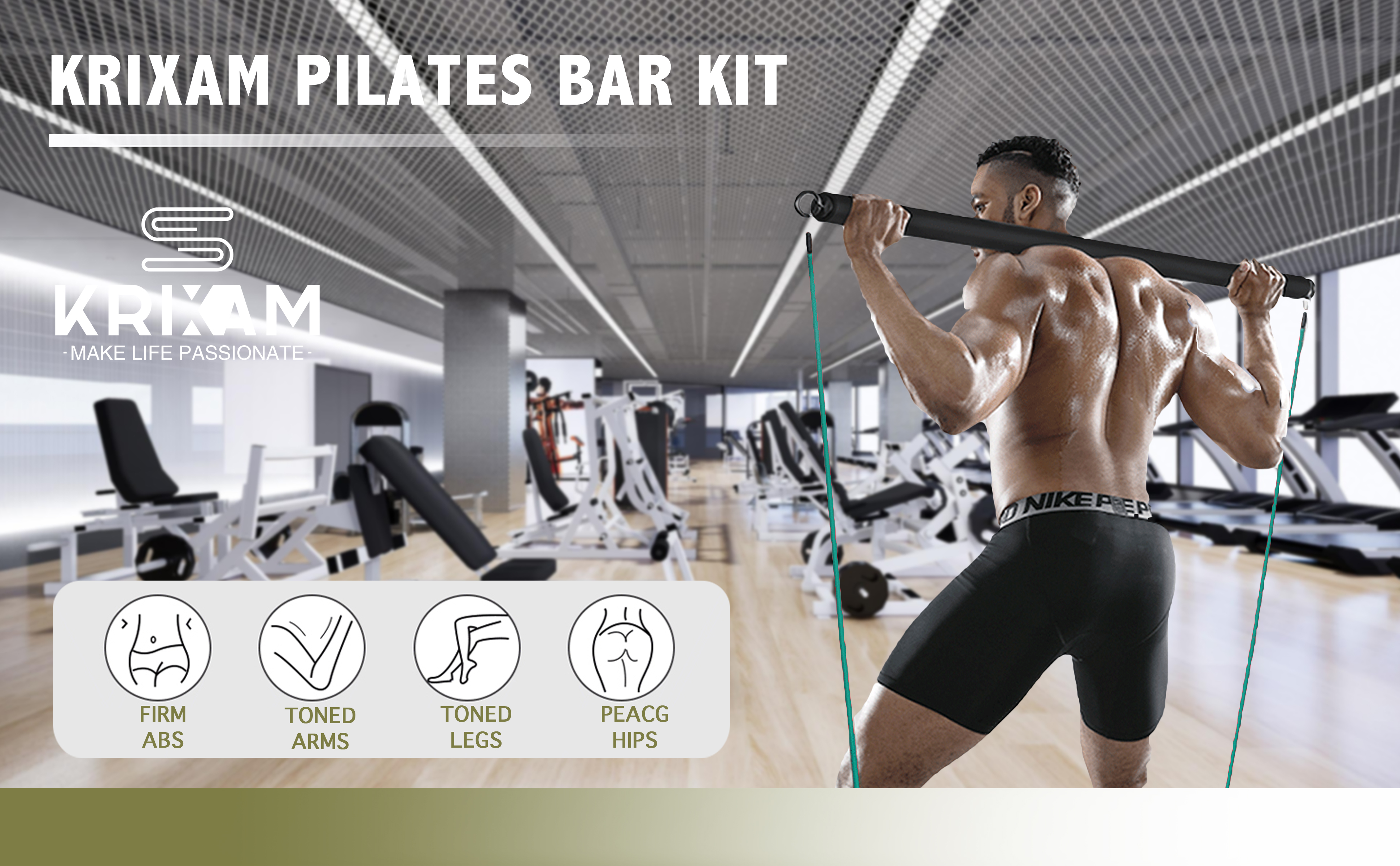 FOR ANY FITNESS LEVEL:The KRIXAM Pilates equipment consist of 5 resistance bands, 2 hand holders ,2 foot loops ,1 stretch band and 1 hip band. You could pick resistance bands for different strengths depend on your needs in order to adjust weights/strengths for various sports. We believe this pilates bar is ideal home fitness equipment for both men and women, burn calories faster.