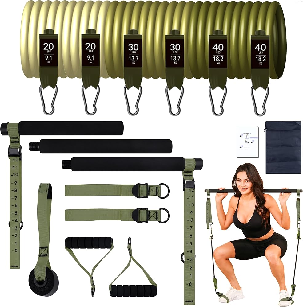 UPGRADED PILATES BAR KIT: For this upgraded version pilates bar kit in 2023, it adopts stronger materials with 2022 popular color scheme. It is mainly consisted of high quality steel rods and durable TPU resistances bands, and they never break. And the strong 360° rotating metal lifting lugs & high-strength alloy buckle allow you to easily replace the latex resistance bands and prevent the bands from tangling.