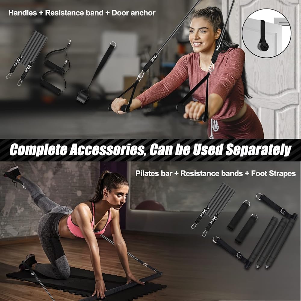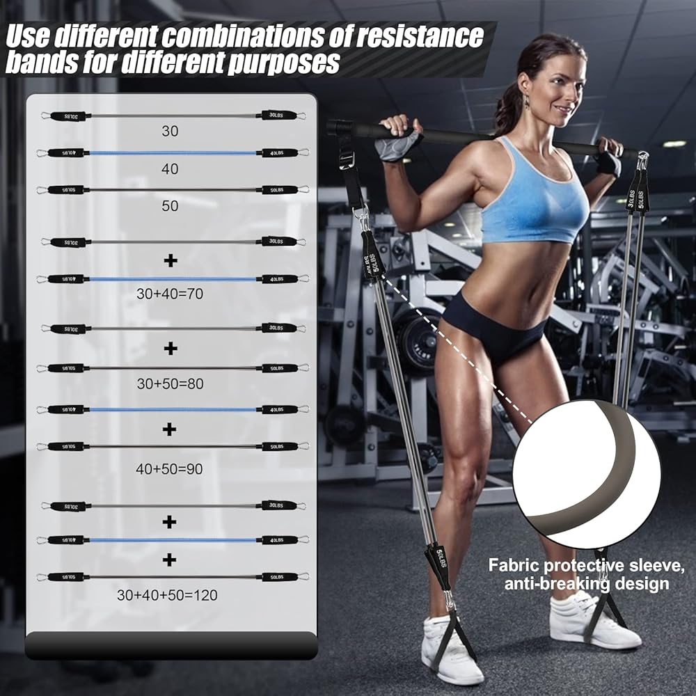 🏅【مساعد تدريب المقاومة】: الطول الصافي لأشرطة المقاومة هو 45 سم (17.72 بوصة)، ويمكن تمديدها بطول 200 سم (78.74 بوصة) وهي مساعد رائع لتدريب المقاومة الخاص بك. تأتي مجموعة WeluvFit Pilates Bar Kit مع 6 أشرطة مقاومة، تختلف في المقاومة 30LBS*2+40LBS*2+50LBS*2، بحد أقصى 120LBS. تعتبر قضبان البيلاتس من معدات اللياقة البدنية المنزلية المثالية للرجال والنساء وخيار حرق السعرات الحرارية بشكل أسرع.