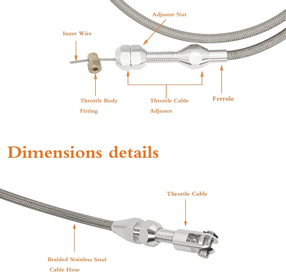 2.Made from high-quality stainless steel, this throttle cable can easily be cut for a more custom fit, ensuring it works perfectly for your specific vehicle. The specially extruded liner provides added durability, making it resistant to wear and tear even under the most demanding conditions.