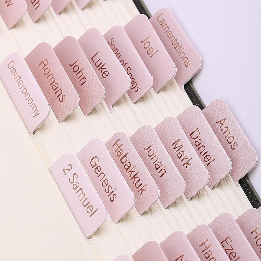 علامات تبويب السيد Pen للكتاب المقدس، 75 علامة تبويب، ظلال وردية، علامات تبويب الكتاب المقدس مغلفة للنساء والرجال، علامات تبويب الكتاب المقدس لدراسة الكتاب المقدس، علامات تبويب فهرس الكتاب المقدس، علامات تبويب كتب الكتاب المقدس، علامات تبويب تسميات الكتاب