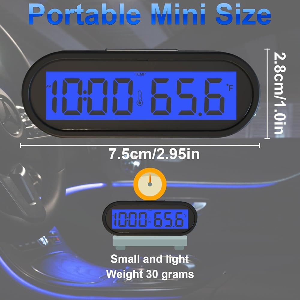 • [Electronic Clock Thermometer]Digital temperature dashboard clock, Can display time and temperature (℉ and℃ Mode), Small size, light weight, easy to carry and place, Weight is 30g.
