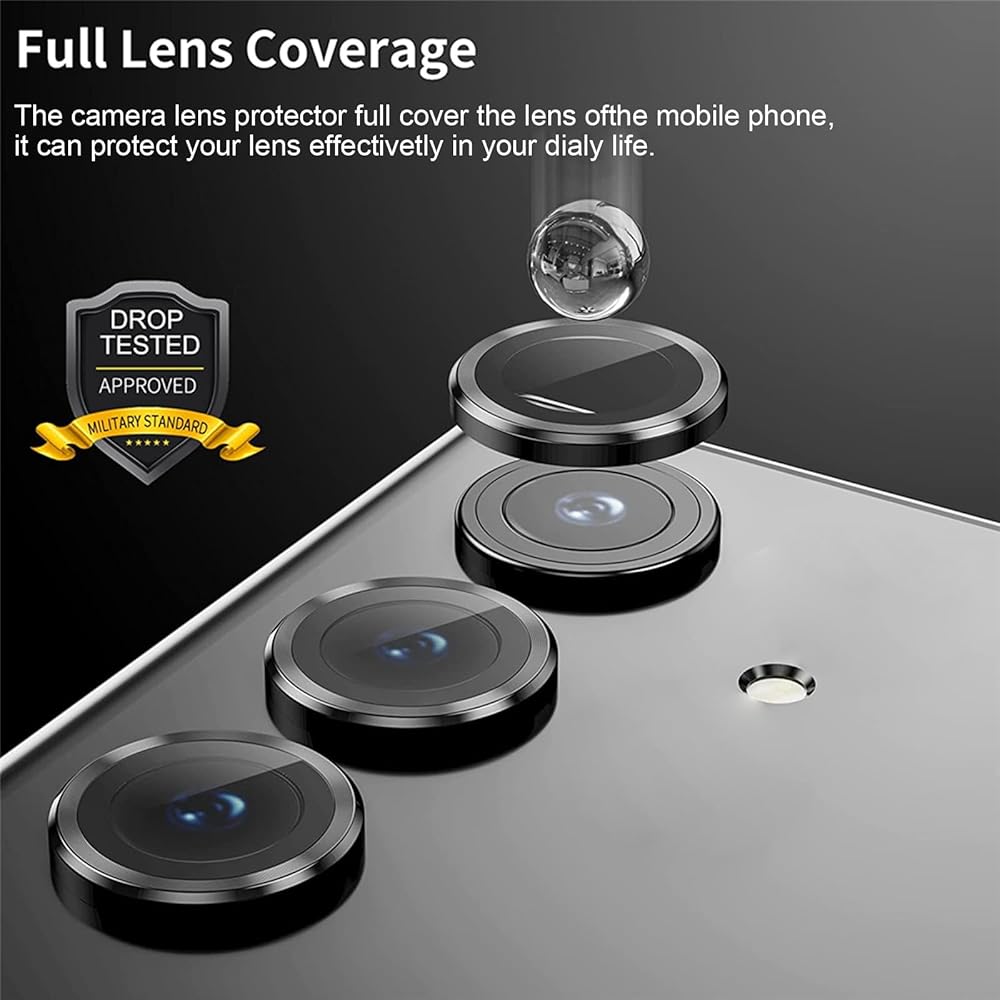 【حماية متميزة ودقة عالية】 الحلقة الخارجية مصنوعة من معدن ألومنيوم الطيران عالي الجودة، مما يوفر تغطية كاملة لعدسة الكاميرا لمنع الخدوش والتأثيرات بشكل فعال. لا يحمي الزجاج المقسى 9H المدمج في الداخل العدسات من التلف فحسب، بل يسمح لك أيضًا بالاستمتاع بصور واضحة تمامًا كما هو الحال مع الكاميرا الأصلية.