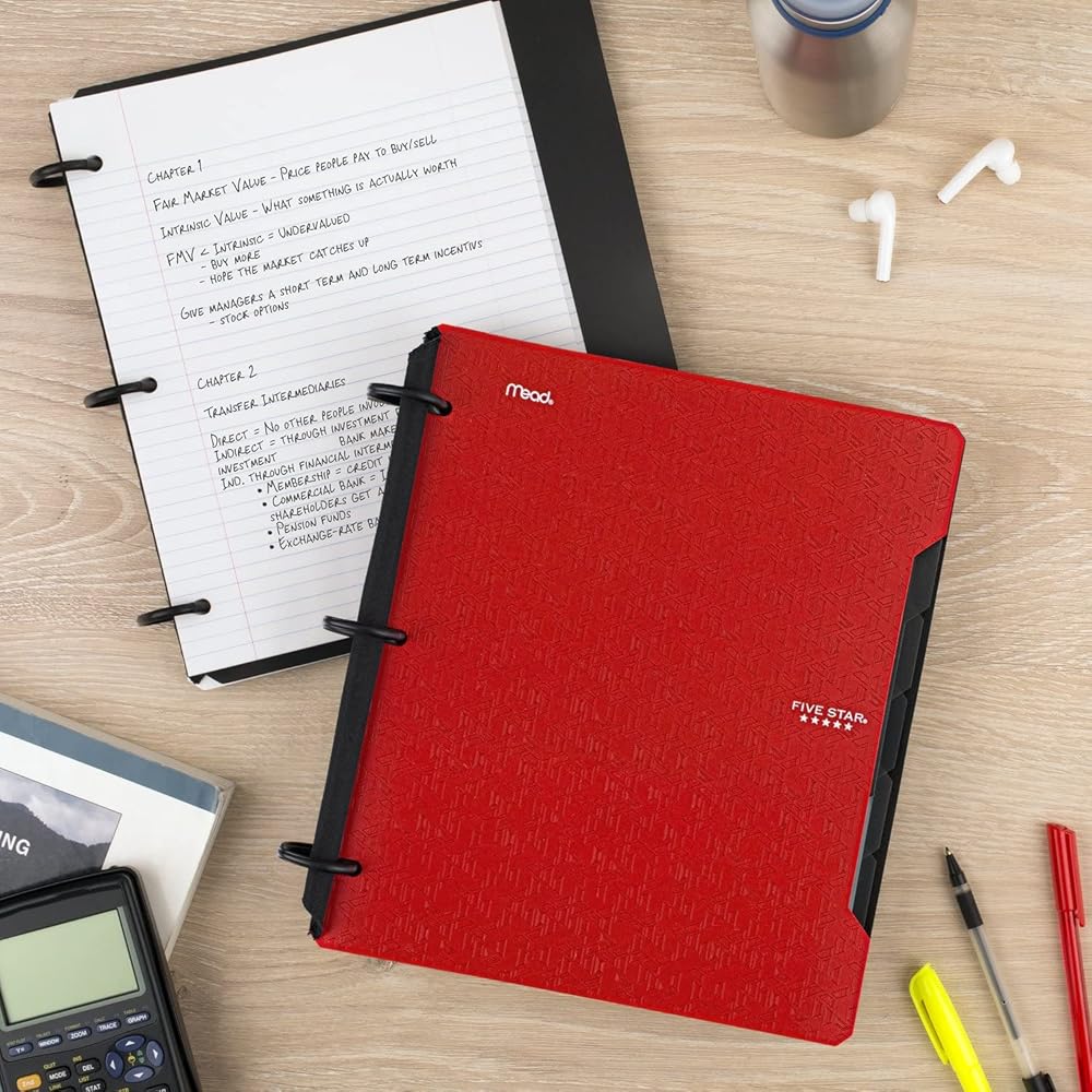 دفتر ملاحظات قابل لإعادة التعبئة من Five Star Flex + تطبيق دراسة، ورق مسطر للكلية، حلقات TechLock مقاس 1 بوصة، جيوب، علامات تبويب وفواصل، سعة 200 ورقة، سيختلف اللون (29328)