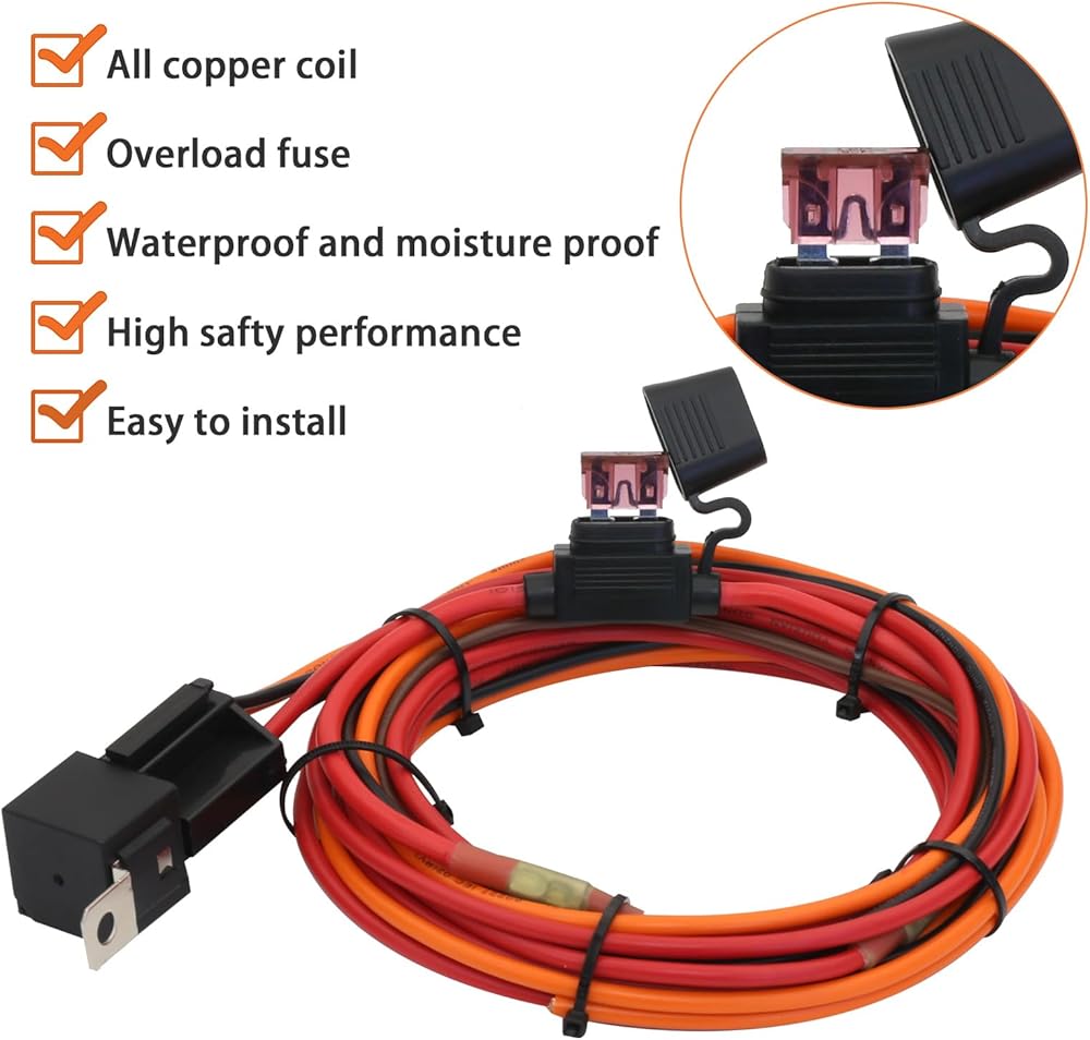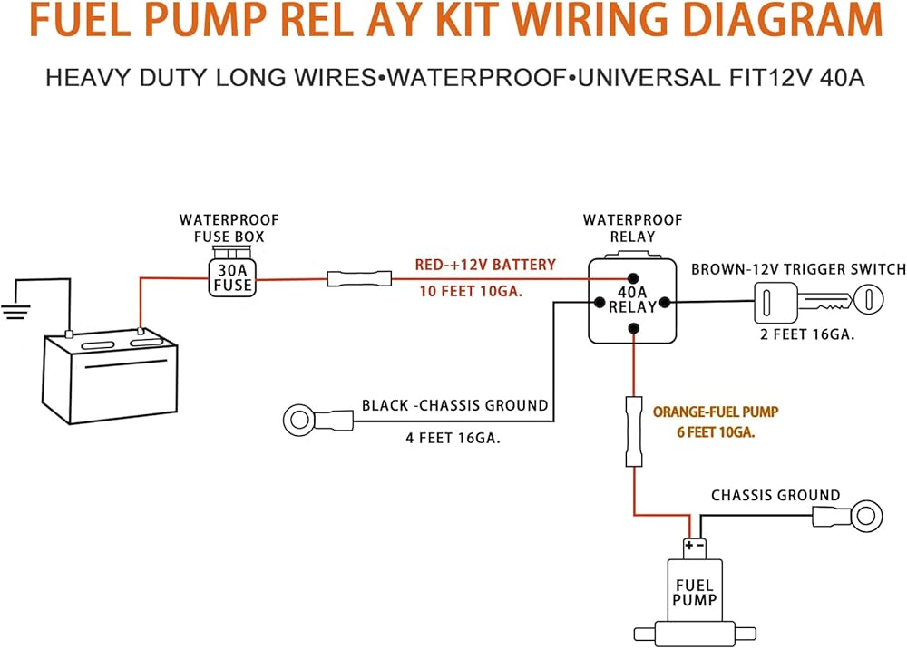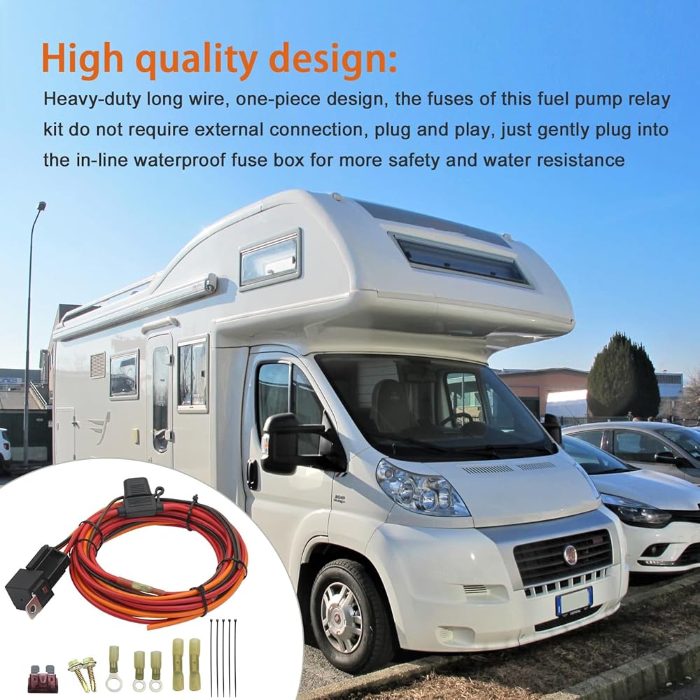[Functional]: Keep the fuel pump pressure constant, prevent the fuel pump voltage drop and fuel pump amperage overload damage to the vehicle electrical system. [Application]: 12V system, electric fuel pump relay kit with continuous current below 40 amps. [High quality material]: Fuel pump relay kit has excellent water resistance and wear resistance to ensure stable use. [Easy installation]: Each component is colored and coded for easy differentiation. You can install it by following the installation instructions or searching for the relevant installation tutorial. If you have any questions, please contact us. [After sale]: If you have any problems please kindly contact us by logging in your Amazon Buyer Account , Find your order and click Contact Seller we will respond you in one business day.
