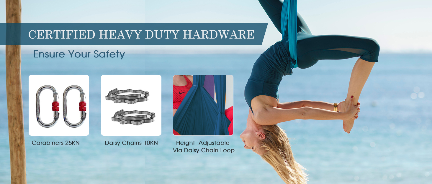• آمنة وموثوقة - مع أقصى سعة للوزن تصل إلى 1984 رطل، تم اعتماد أرجوحة اليوغا والأجهزة الخاصة بنا لضمان أنها آمنة وموثوقة للتمرينات الخاصة بك.