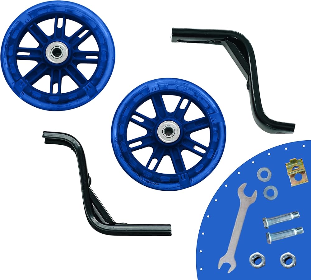 عجلات تدريب الدراجة - عجلات تدريب معدنية، PVP، PP - عجلات تدريب مضيئة لدراجة الأطفال مقاس 14 بوصة - 16 بوصة - ملحقات دراجة الأطفال مع دعامة دعم إضافية (أزرق، 14 بوصة)