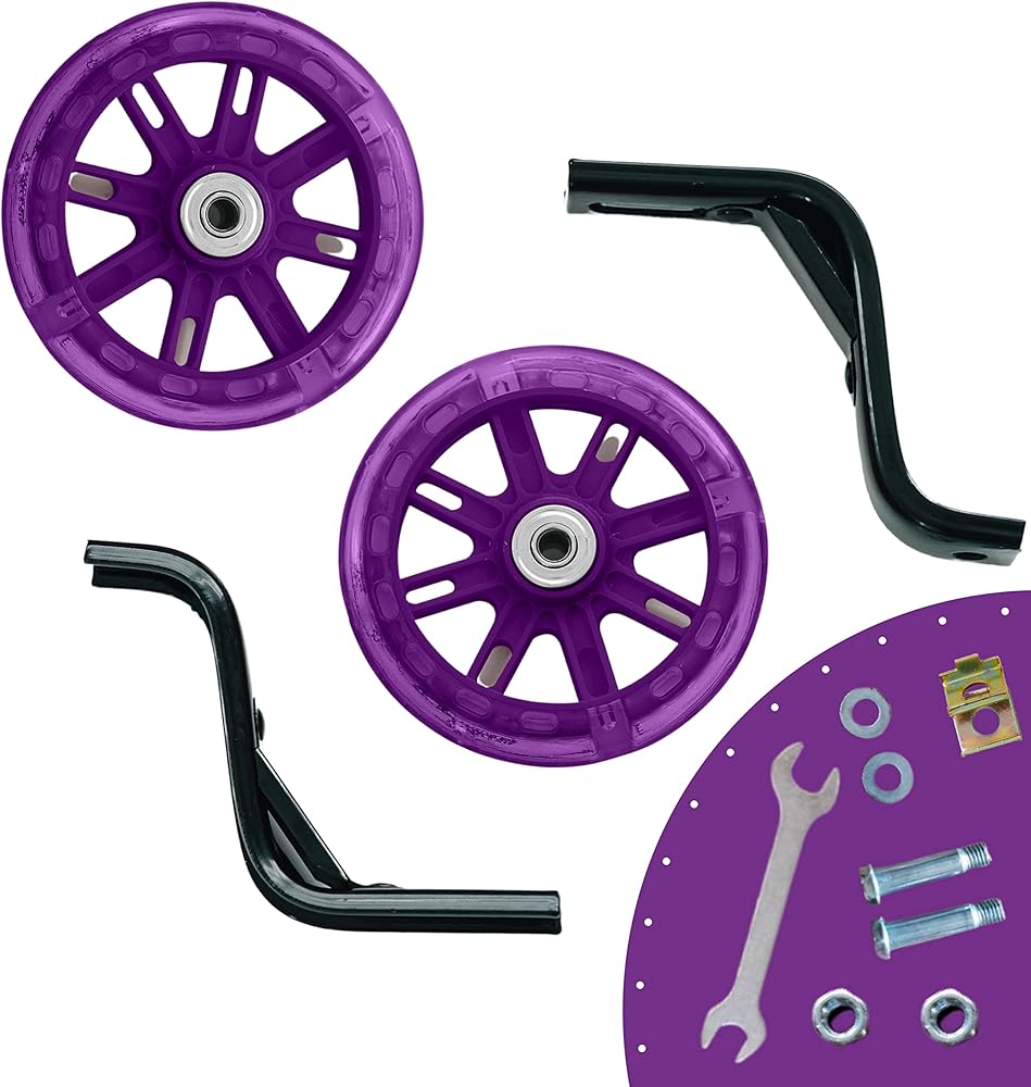 عجلات تدريب مضيئة: توفر المزيد من الثبات والأمان لدراجة طفلك مع عجلات تدريب دراجة الأطفال هذه. متوافقة مع عجلات الدراجة مقاس 16 أو 14 بوصة، وقد تم تصميم عجلات التدريب لدينا بدعم إضافي لتجنب الانحناء أثناء الاستخدام.
